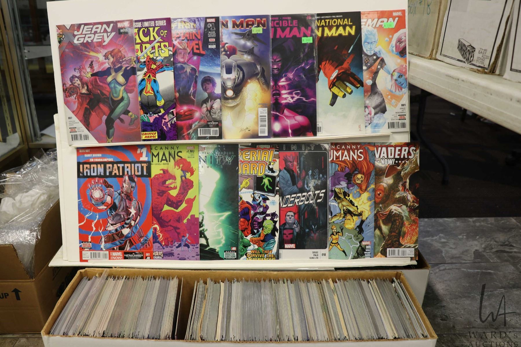 Box of approx. more than 300 comics including Invincible Iron Man, International Iron Man, Iceman, Thunderbolts Infinity, The Uncanny Inhumans, Invaders, etc. Important: Pickup is in Edmonton. Long comic boxes (28 x 8 x 11.5 and 23kg) will be shipped in 2 boxes approximately 11 x 9 x 12 and 13kg each through Canada Post. Long boxes can be palletized for large invoices. Details to follow