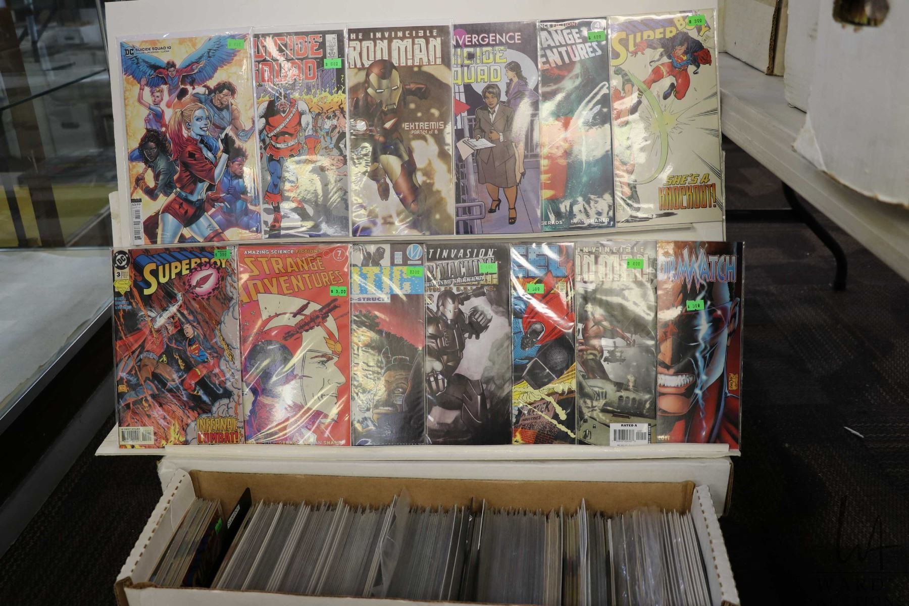 Box of approx. more than 300 comics including Iron Man, Steel, Stormwatch, Suicide Squad, Strange Ad