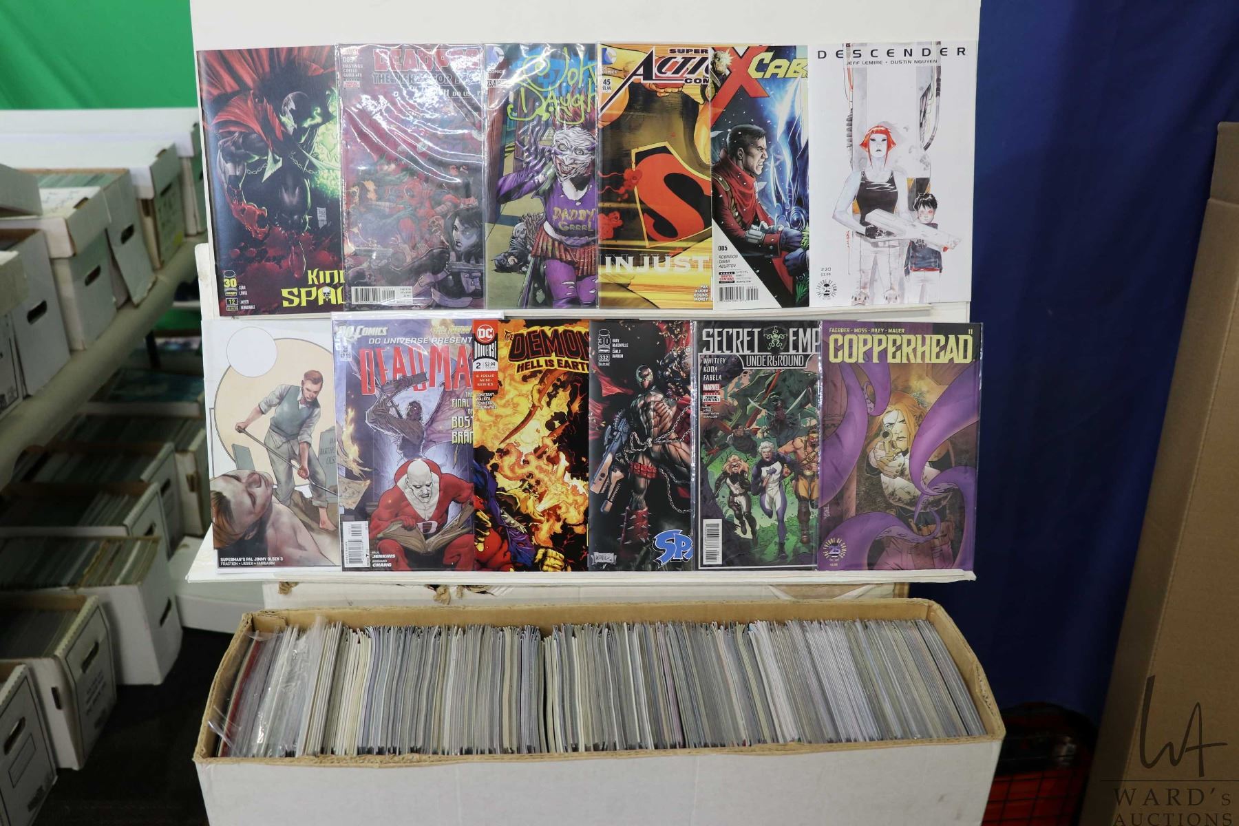 Box of approx. more than 300 comics including Jokers Daughter, The Demon, Deadpool, Deadman, King Spawn, Supermans Pal Jimmy Olsen, etc. Important: Pickup is in Edmonton. Long comic boxes (28 x 8 x 11.5 and 23kg) will be shipped in 2 boxes approximately 11 x 9 x 12 and 13kg each through Canada Post. Long boxes can be palletized for large invoices. Details to follow