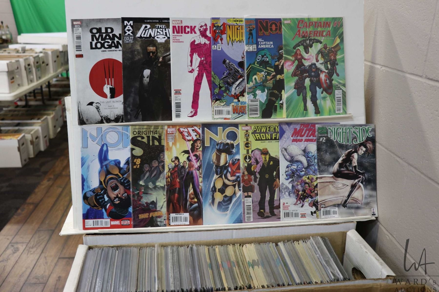 Box of approx. more than 300 comics including Nick Fury, New Exiles, The Punisher, Original Sin, Old Man Logan, Nova, etc. Important: Pickup is in Edmonton. Long comic boxes (28 x 8 x 11.5 and 23kg) will be shipped in 2 boxes approximately 11 x 9 x 12 and 13kg each through Canada Post. Long boxes can be palletized for large invoices. Details to follow