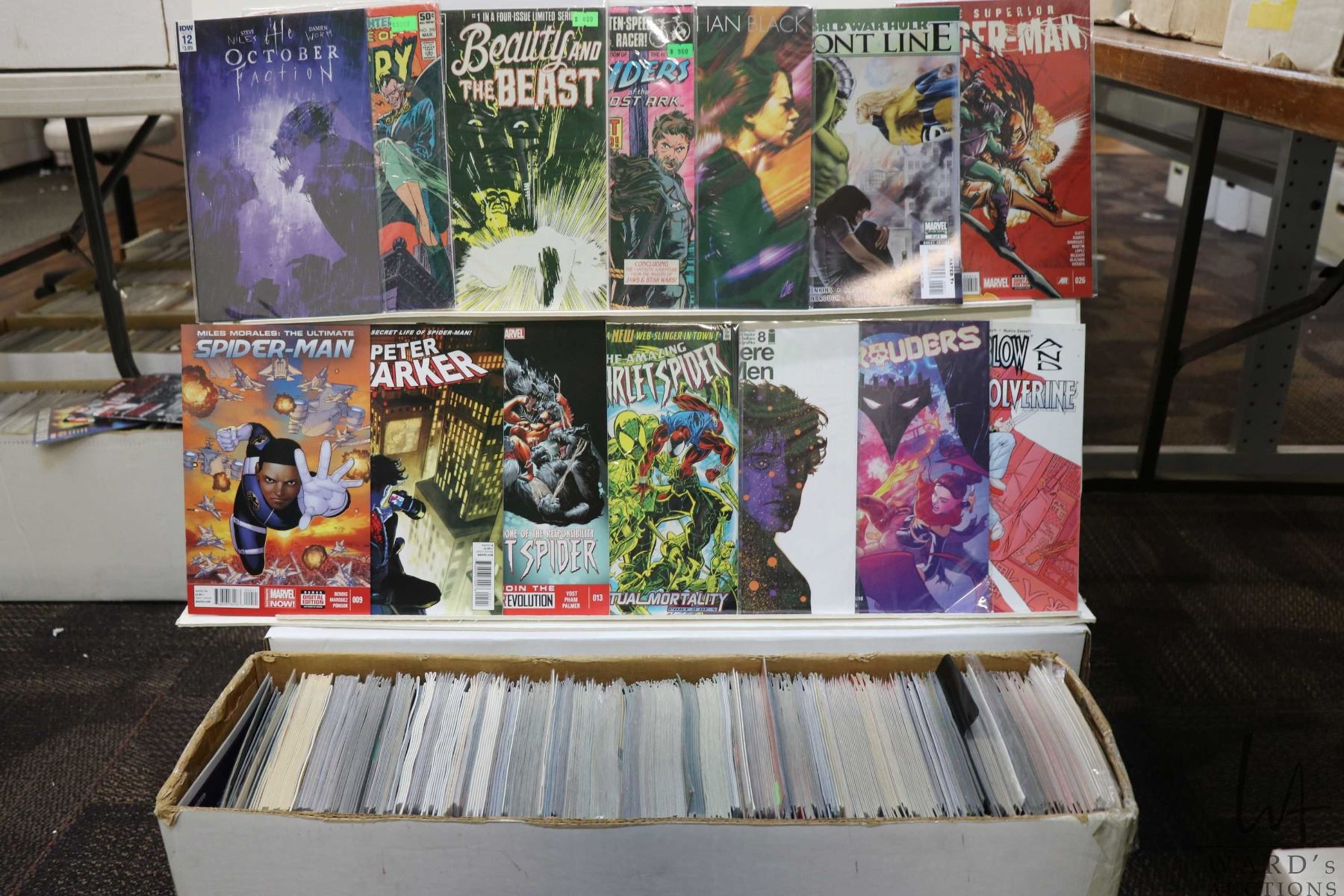 Box of approx. more than 300 comics including Nowhere Men, Orphan Black, Frontline, Spiderman, Deathblow & Wolverine, etc. Important: Pickup is in Edmonton. Long comic boxes (28 x 8 x 11.5 and 23kg) will be shipped in 2 boxes approximately 11 x 9 x 12 and 13kg each through Canada Post. Long boxes can be palletized for large invoices. Details to follow