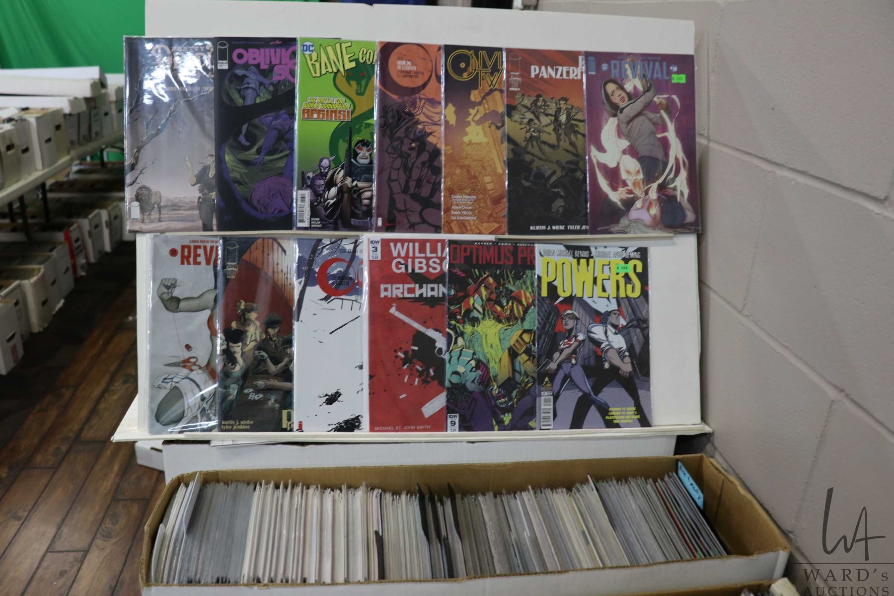Box of approx. more than 300 comics including Outcast, Bane Conquest, Oblivion Song, Peter Panzarfaust, Pretty Deadly, Revival, etc. Important: Pickup is in Edmonton. Long comic boxes (28 x 8 x 11.5 and 23kg) will be shipped in 2 boxes approximately 11 x 9 x 12 and 13kg each through Canada Post. Long boxes can be palletized for large invoices. Details to follow