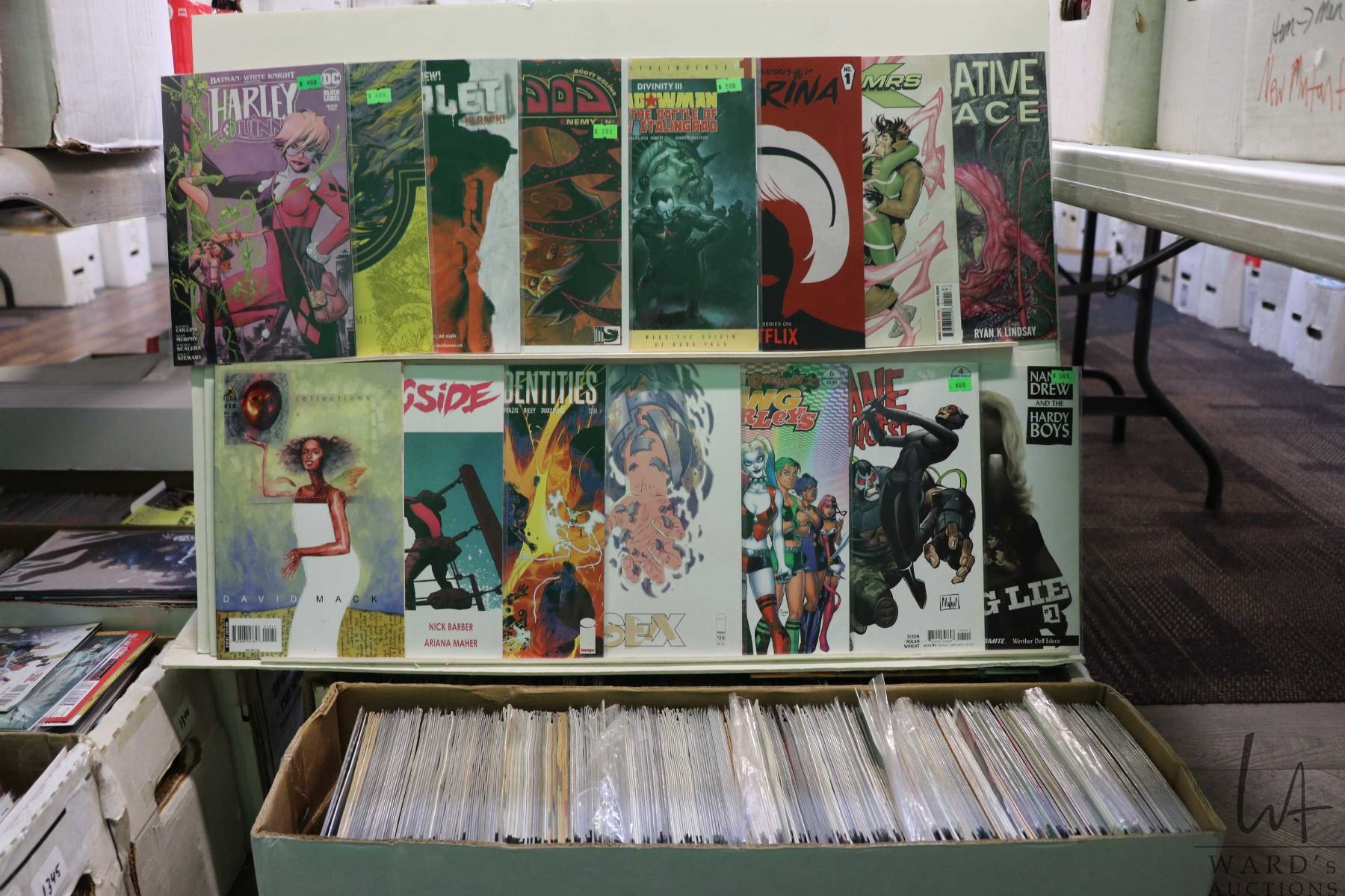 Box of approx. more than 300 comics including Sabrina, Harley Quinn, Mr. & Mrs. X, Bane Conquest, Negative Space, Nancy Drew & The Hardy Boys, etc. Important: Pickup is in Edmonton. Long comic boxes (28 x 8 x 11.5 and 23kg) will be shipped in 2 boxes approximately 11 x 9 x 12 and 13kg each through Canada Post. Long boxes can be palletized for large invoices. Details to follow