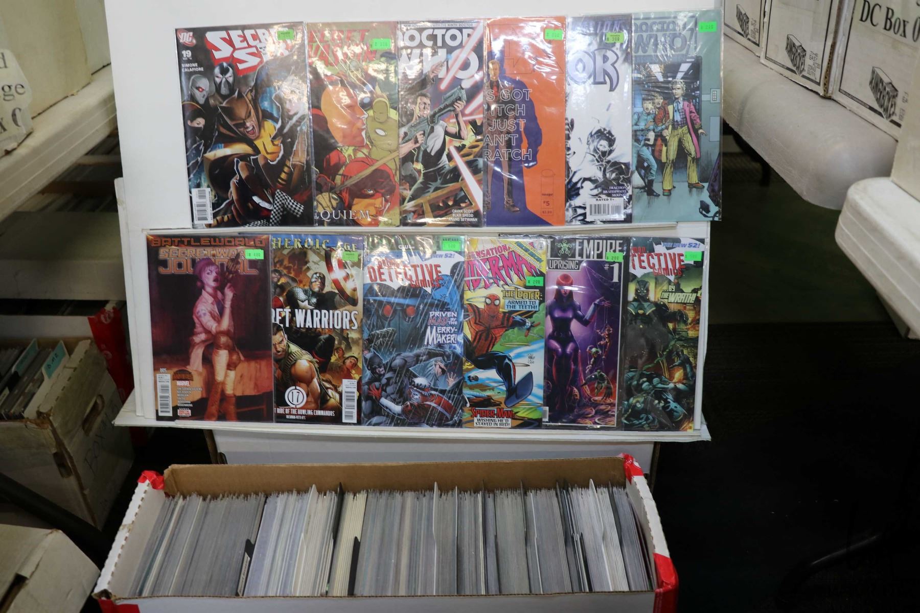 Box of approx. more than 300 comics including Sex, Spiderman, Thor, Secret Empire, Dr. Who, Batman D