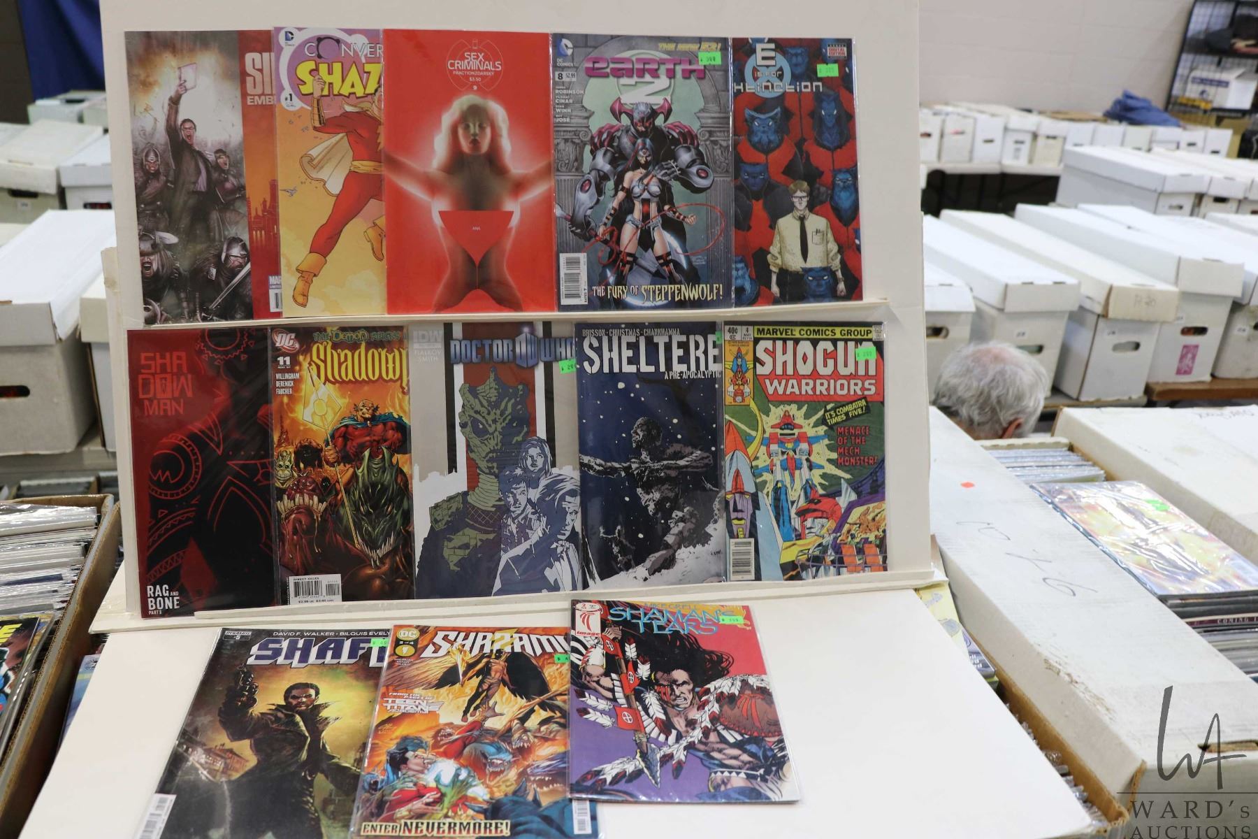 Box of approx. more than 300 comics including Sexual Criminals, Dr. Who, Shadow Pact, Shazaam, Shado