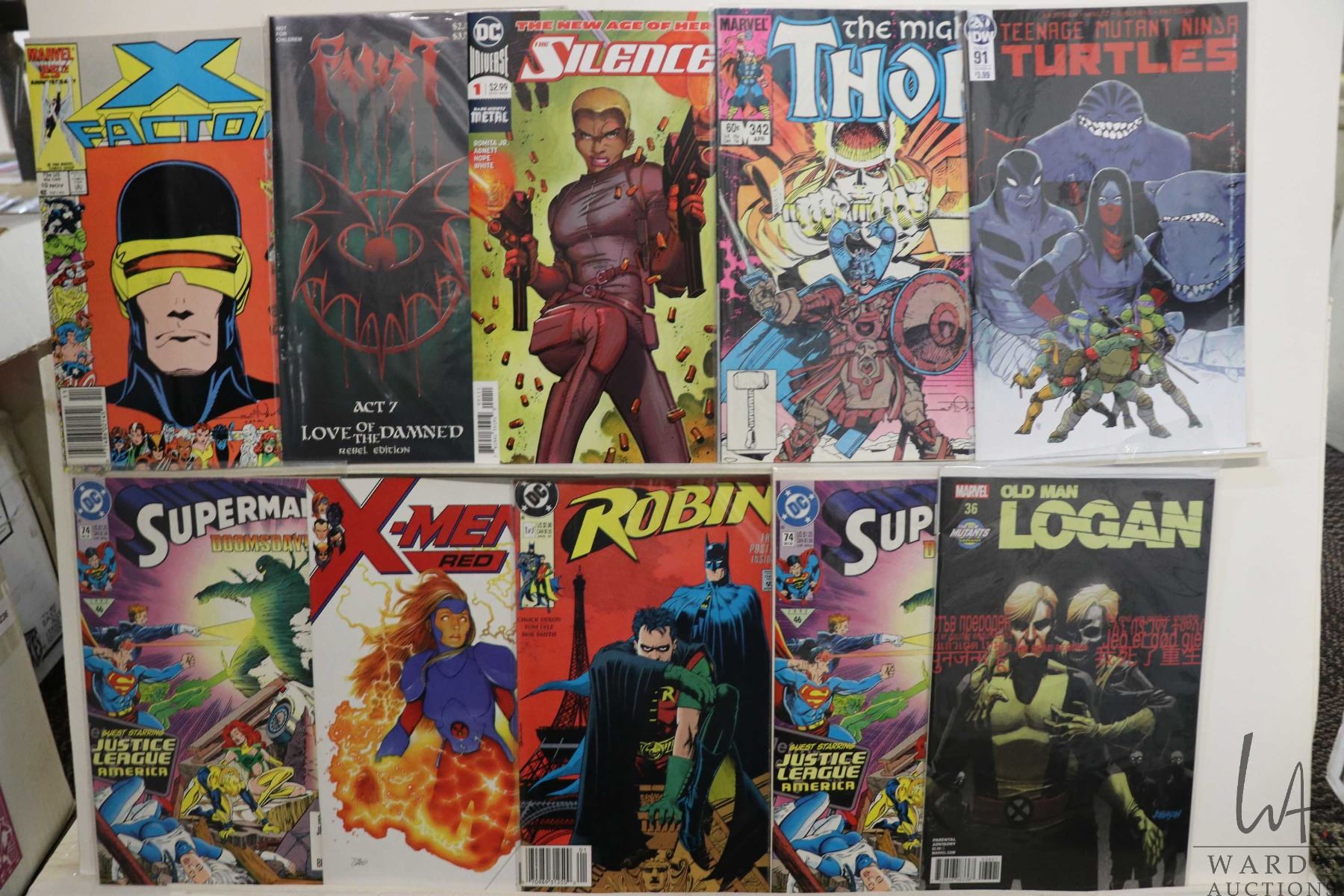 Box of approx. more than 300 comics including Silencer, Robin, Faust, X-Men Red, Superman, X Factor,
