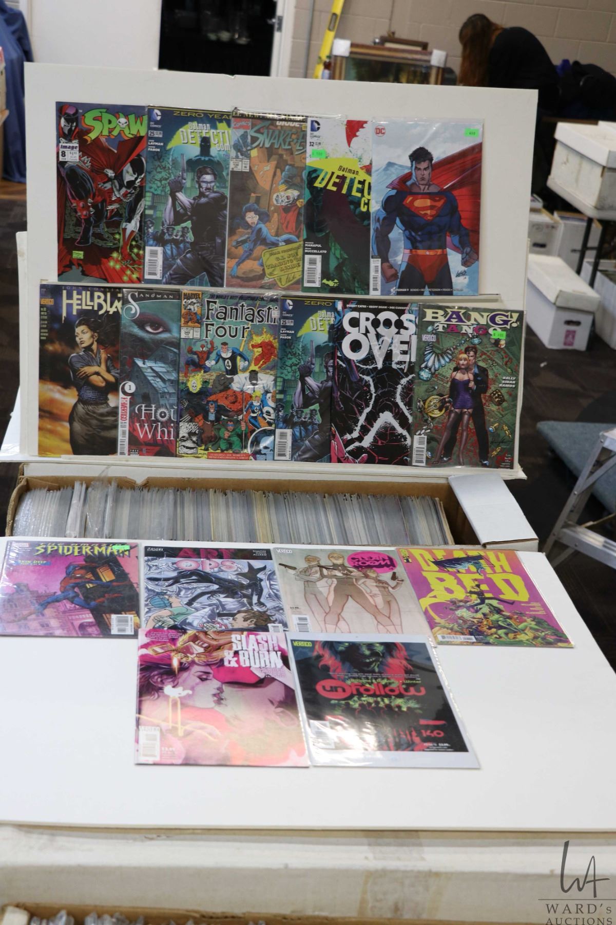 Box of approx. more than 300 comics including Snake-Eyes, Fantastic Four, Batman Detective, House of Whispers, Spawn, Hellblazer, etc. Important: Pickup is in Edmonton. Long comic boxes (28 x 8 x 11.5 and 23kg) will be shipped in 2 boxes approximately 11 x 9 x 12 and 13kg each through Canada Post. Long boxes can be palletized for large invoices. Details to follow
