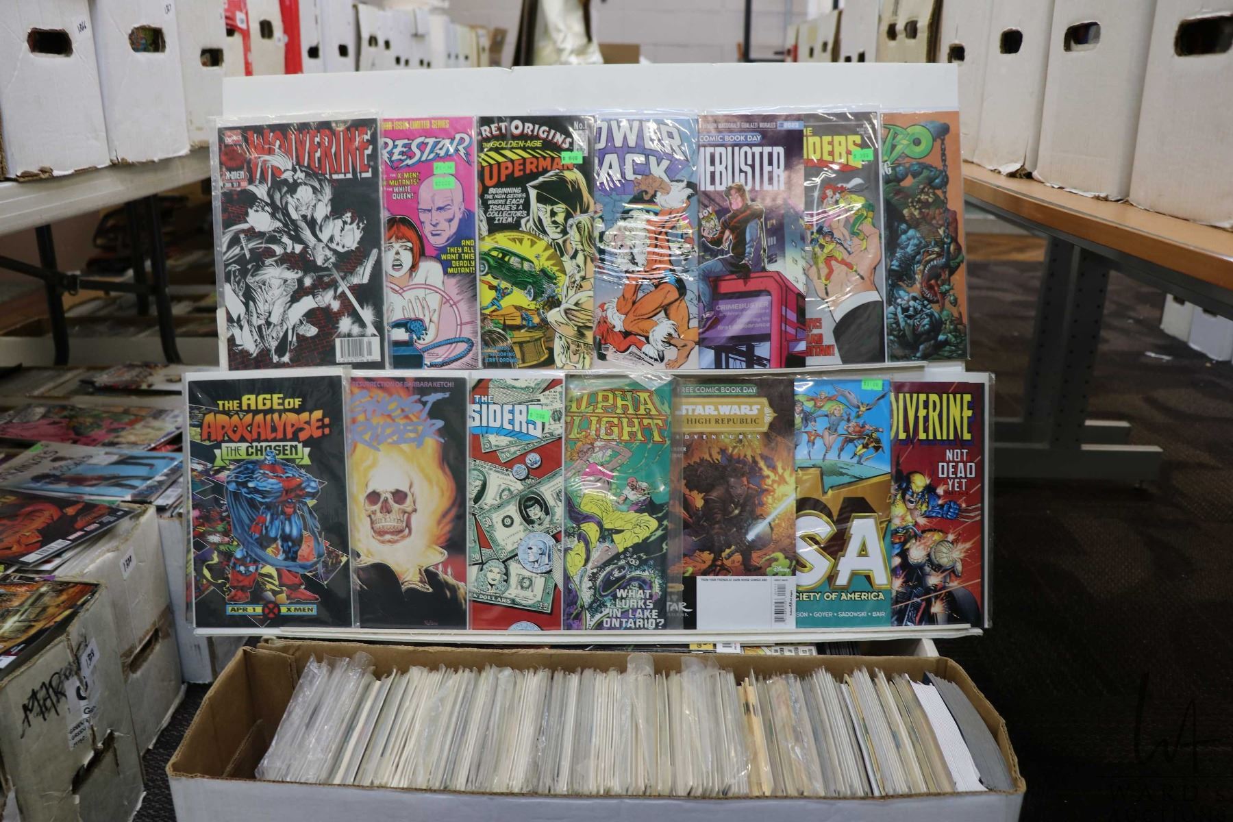 Box of approx. more than 300 comics including Star Wars The High Republic, Crime Buster, The Outsiders, Justice Society of America, Lobo, Wolverine, etc. Important: Pickup is in Edmonton. Long comic boxes (28 x 8 x 11.5 and 23kg) will be shipped in 2 boxes approximately 11 x 9 x 12 and 13kg each through Canada Post. Long boxes can be palletized for large invoices. Details to follow