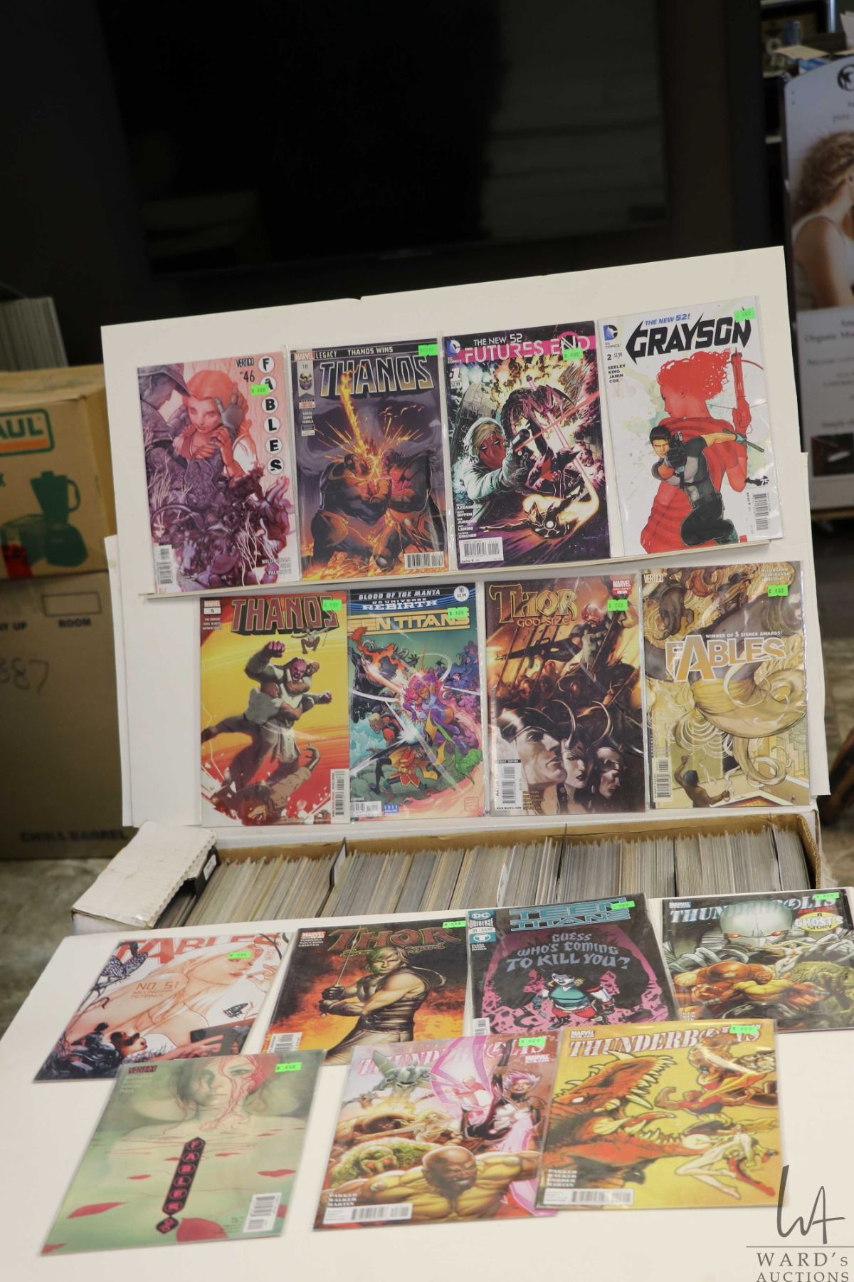 Box of approx. more than 300 comics including Teen Titans, Thor, Thunderbolts, Fables, The New 52 Fu