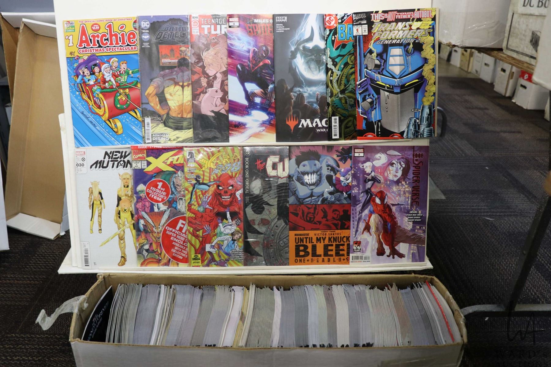 Box of approx. more than 300 comics including Teenage Mutant Ninja Turtles, X-Ray Robot, Batman Detective, X-Force, Archie, New Mutants, etc. Important: Pickup is in Edmonton. Long comic boxes (28 x 8 x 11.5 and 23kg) will be shipped in 2 boxes approximately 11 x 9 x 12 and 13kg each through Canada Post. Long boxes can be palletized for large invoices. Details to follow