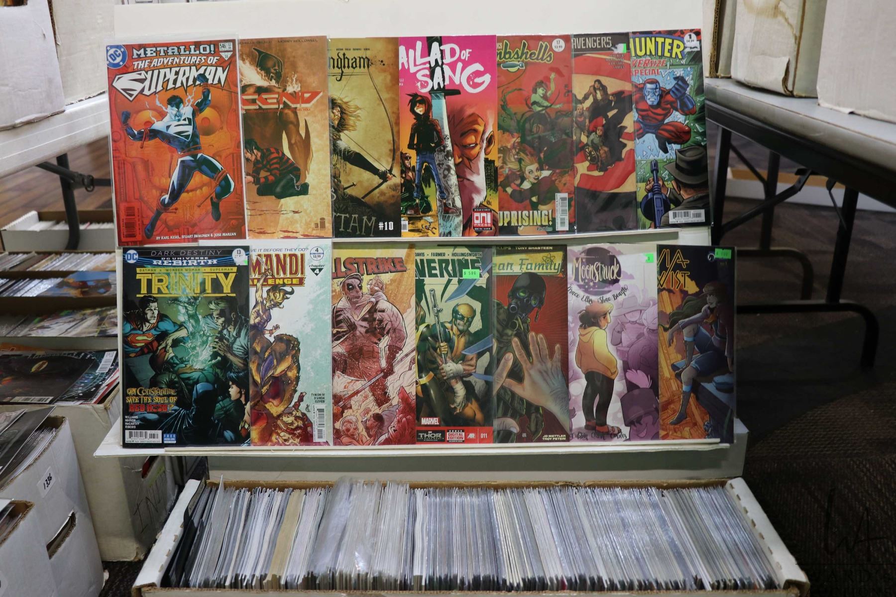 Box of approx. more than 300 comics including The Ballad of Sang, Bombshells, Nuclean Family, Moonstruck, Avengers, Manhunter, Olivia Twist, etc. Important: Pickup is in Edmonton. Long comic boxes (28 x 8 x 11.5 and 23kg) will be shipped in 2 boxes approximately 11 x 9 x 12 and 13kg each through Canada Post. Long boxes can be palletized for large invoices. Details to follow