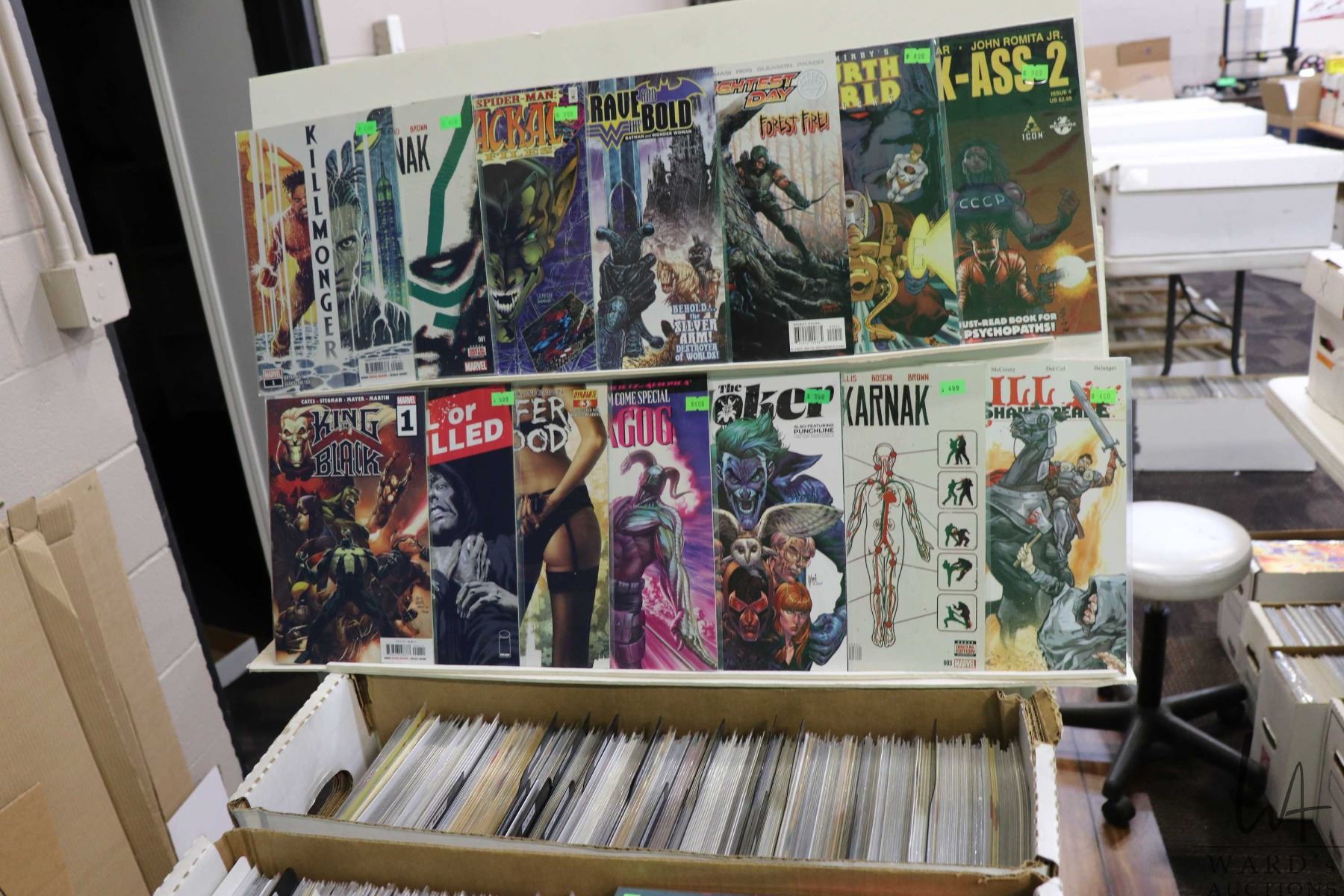 Box of approx. more than 300 comics including The Joker, Brightest Day, Fourth World, Kick-Ass, Kill Shakespeare, Karnak, etc. Important: Pickup is in Edmonton. Long comic boxes (28 x 8 x 11.5 and 23kg) will be shipped in 2 boxes approximately 11 x 9 x 12 and 13kg each through Canada Post. Long boxes can be palletized for large invoices. Details to follow