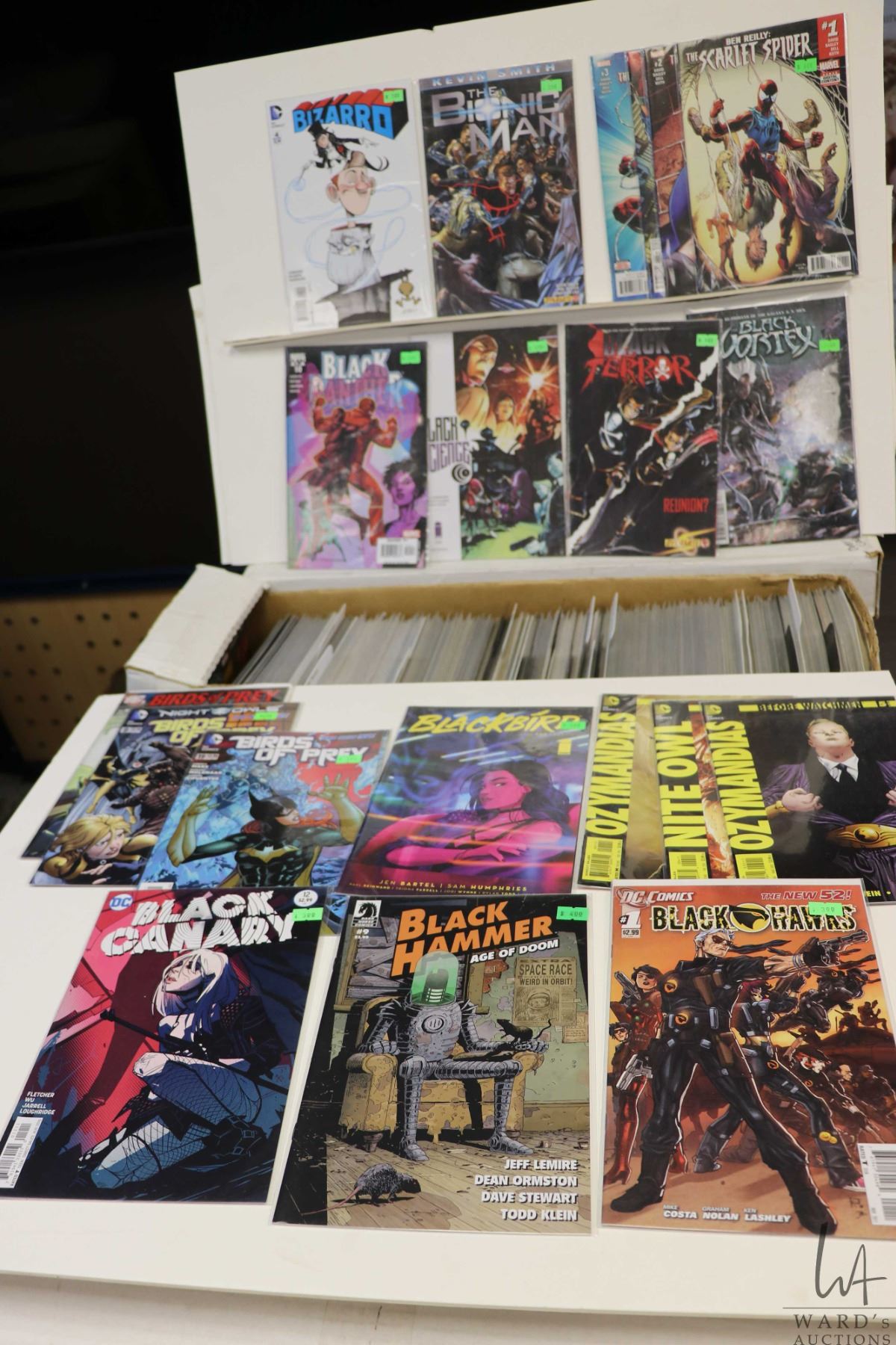 Box of approx. more than 300 comics including The Scarlet Spider, Birds of Prey, Black Panther, Black Science, Black Terror, Black Vortex, etc. Important: Pickup is in Edmonton. Long comic boxes (28 x 8 x 11.5 and 23kg) will be shipped in 2 boxes approximately 11 x 9 x 12 and 13kg each through Canada Post. Long boxes can be palletized for large invoices. Details to follow