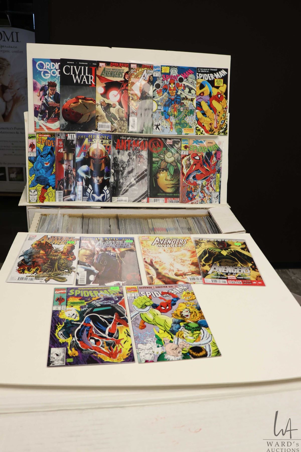 Box of approx. more than 300 comics including The Secret Avengers, Ninjak The Shadow Wars, Spiderman, Civil War 2, Ordinary Gods, etc. Important: Pickup is in Edmonton. Long comic boxes (28 x 8 x 11.5 and 23kg) will be shipped in 2 boxes approximately 11 x 9 x 12 and 13kg each through Canada Post. Long boxes can be palletized for large invoices. Details to follow