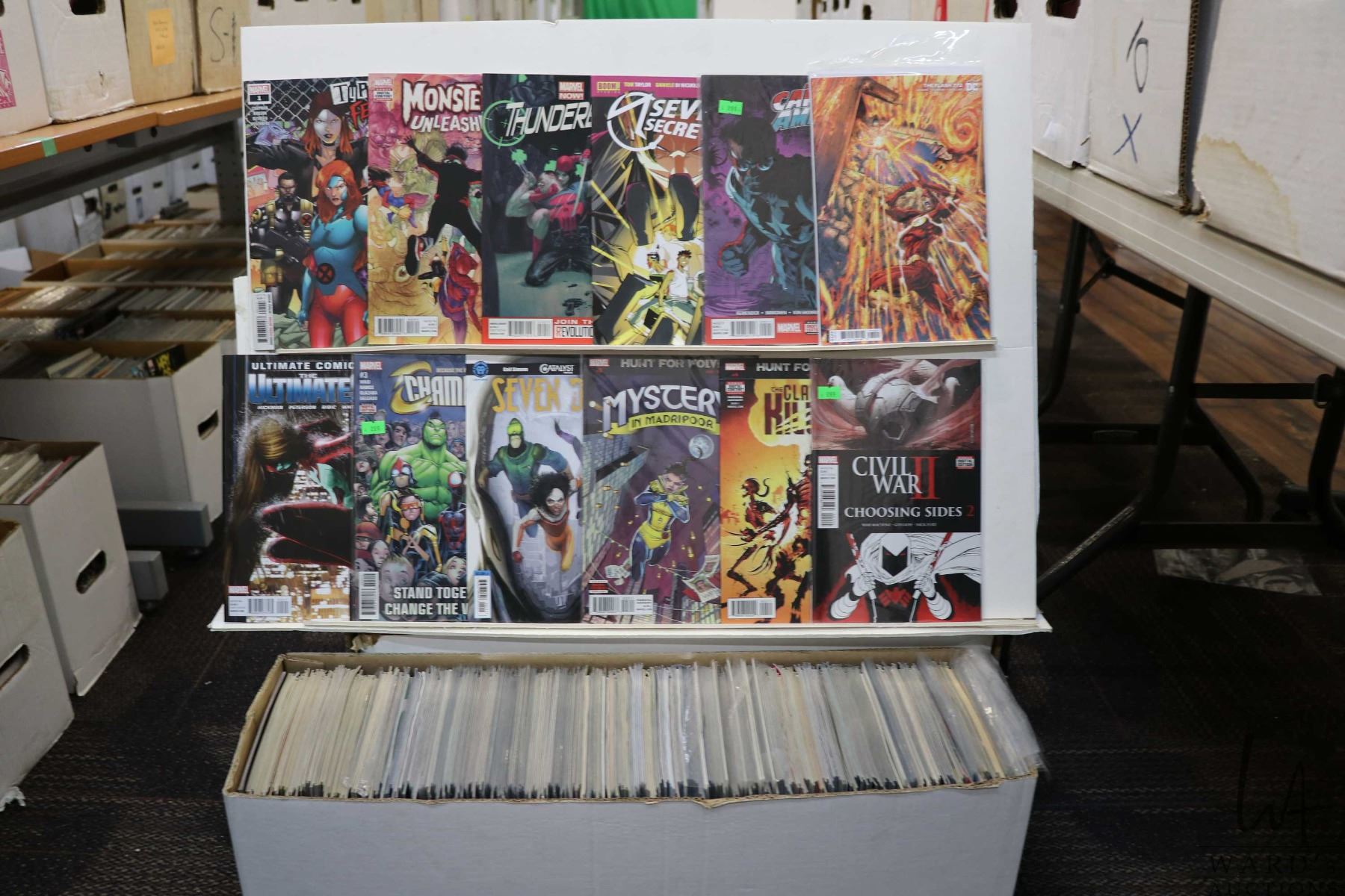 Box of approx. more than 300 comics including Thunderbolts, Seven Days, Monsters Unleashed, Champions, Typhoid Fever, The Ultimates, etc. Important: Pickup is in Edmonton. Long comic boxes (28 x 8 x 11.5 and 23kg) will be shipped in 2 boxes approximately 11 x 9 x 12 and 13kg each through Canada Post. Long boxes can be palletized for large invoices. Details to follow