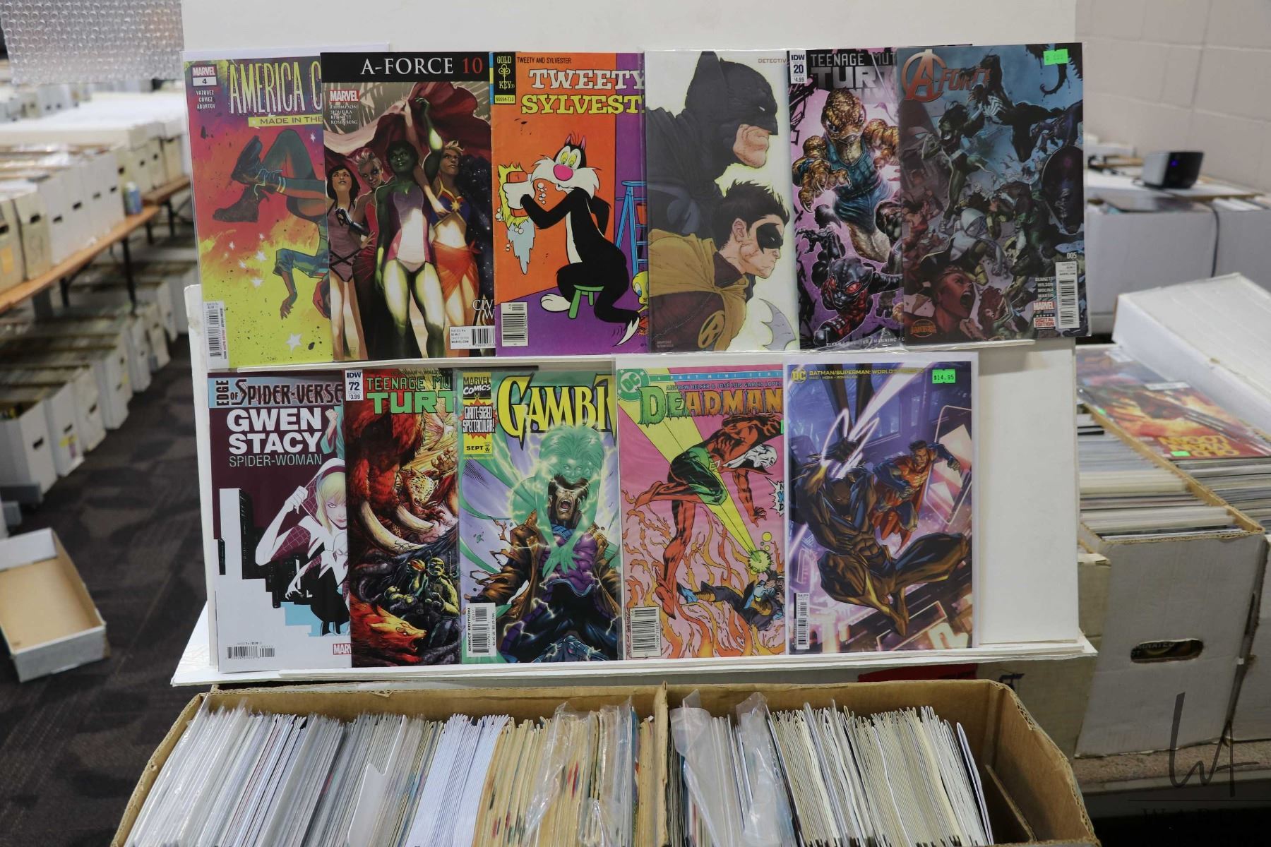 Box of approx. more than 300 comics including Tweety and Sylvester, Gambit, A-Force, Teenage Mutant Ninja Turtles, America Chave, etc. Important: Pickup is in Edmonton. Long comic boxes (28 x 8 x 11.5 and 23kg) will be shipped in 2 boxes approximately 11 x 9 x 12 and 13kg each through Canada Post. Long boxes can be palletized for large invoices. Details to follow