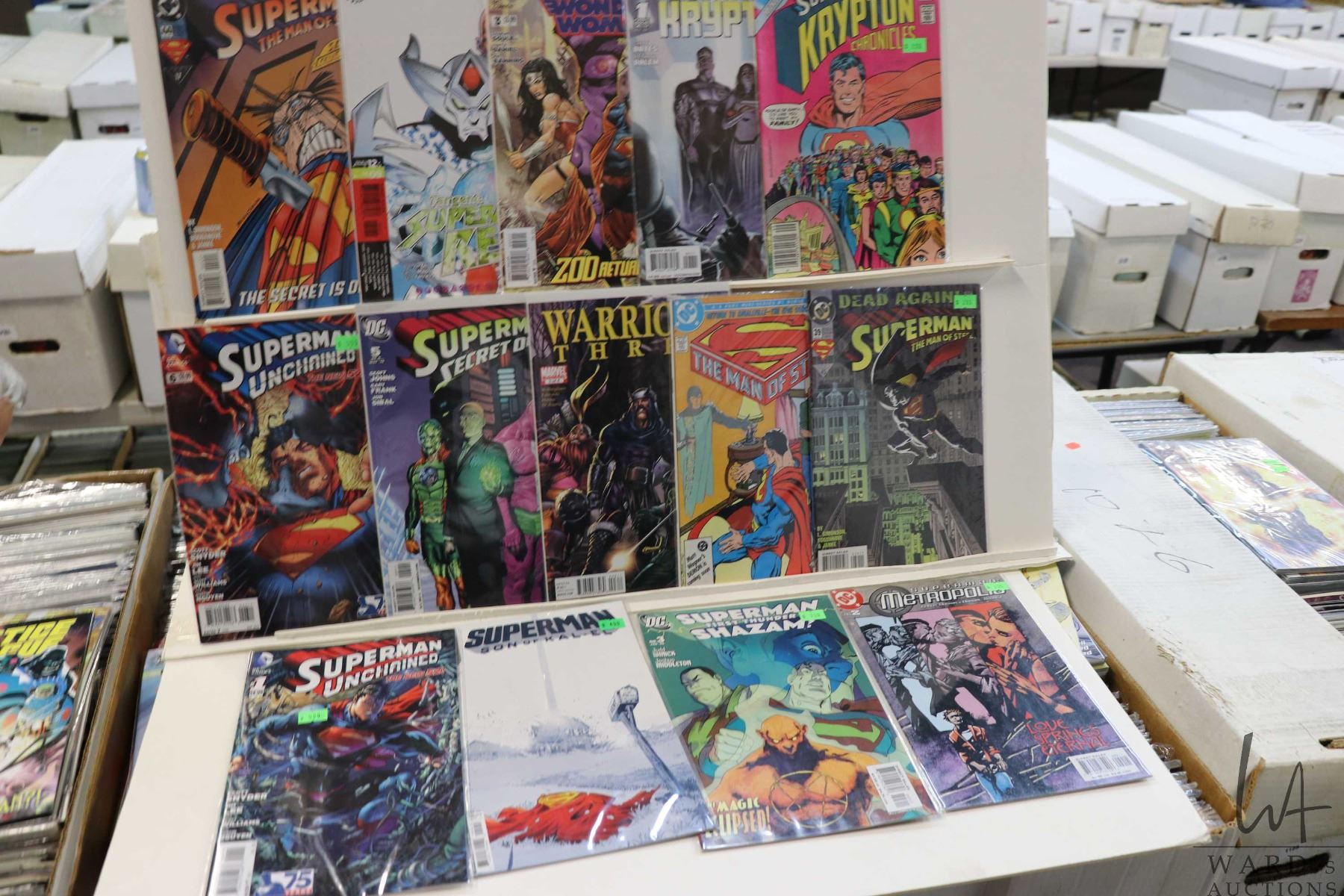 Box of approx. more than 300 comics including Warriors Three, Superman & Wonderwoman, Superman Secret Origin, Superman Unchained, Supermans Reign, Superman The Man of Steel, etc. Important: Pickup is in Edmonton. Long comic boxes (28 x 8 x 11.5 and 23kg) will be shipped in 2 boxes approximately 11 x 9 x 12 and 13kg each through Canada Post. Long boxes can be palletized for large invoices. Details to follow