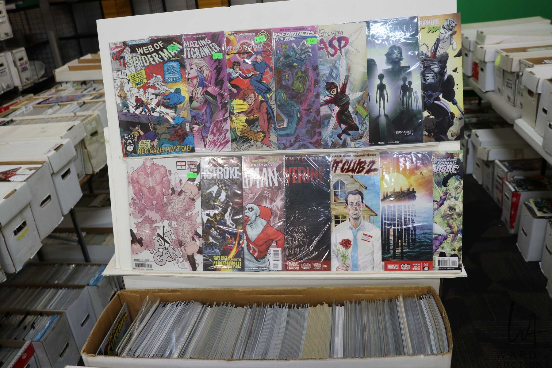 Box of approx. more than 300 comics including Wasp, Fight Club #2, X-Men, The X-Files, Transformers, Terrific Tales, etc. Important: Pickup is in Edmonton. Long comic boxes (28 x 8 x 11.5 and 23kg) will be shipped in 2 boxes approximately 11 x 9 x 12 and 13kg each through Canada Post. Long boxes can be palletized for large invoices. Details to follow