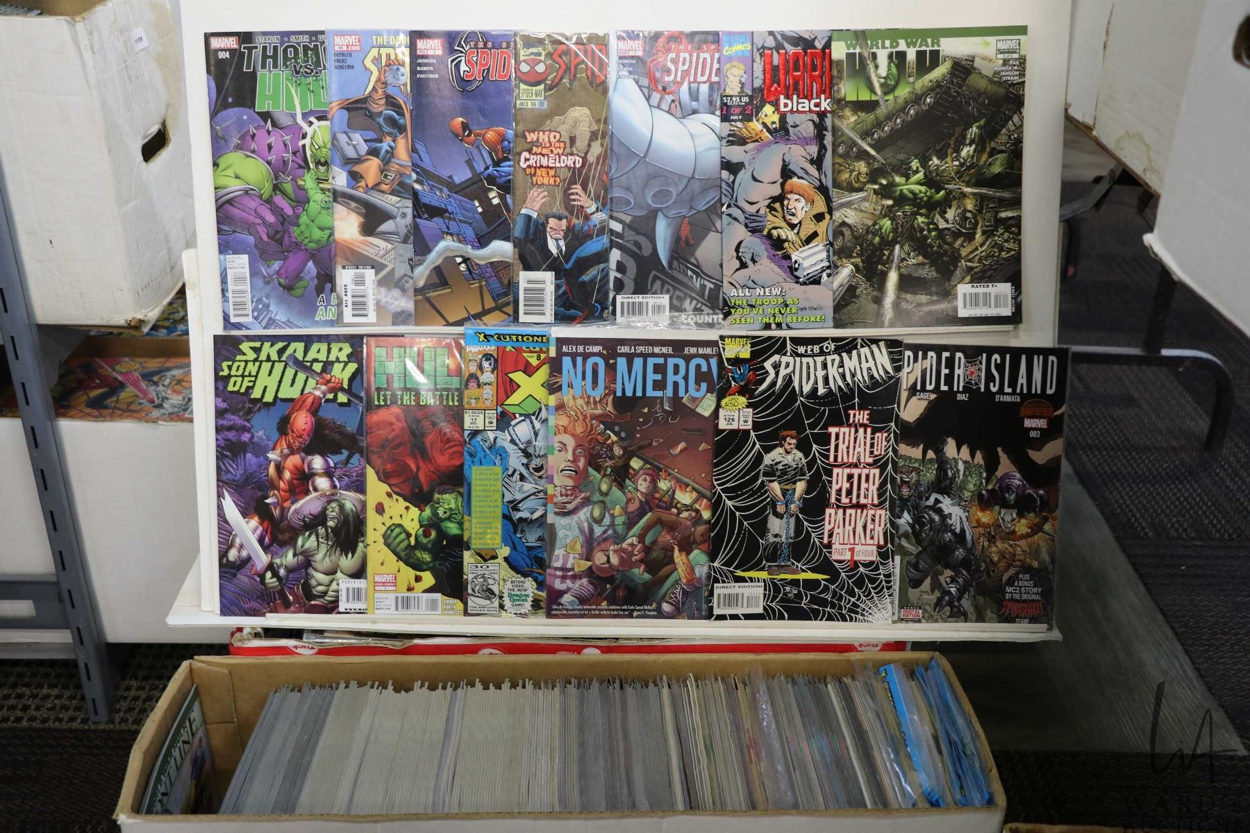 Box of approx. more than 300 comics including X-Force, Spiderman, Spidergirl, Hulk Let the Battle Be