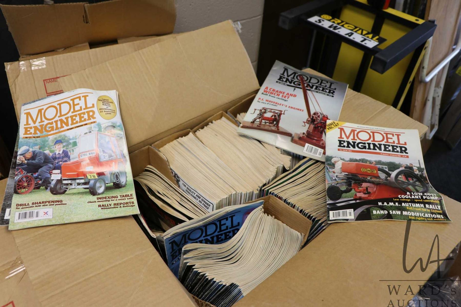 Box of vintage Model Engineering magazines approximately 147 count. Note: Not available for shipping. Local pickup only