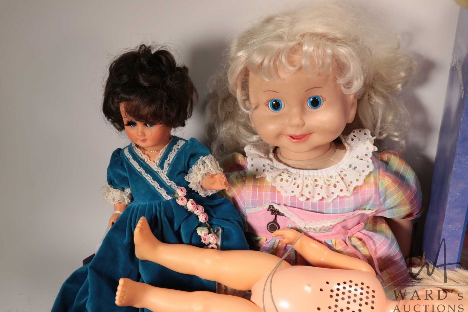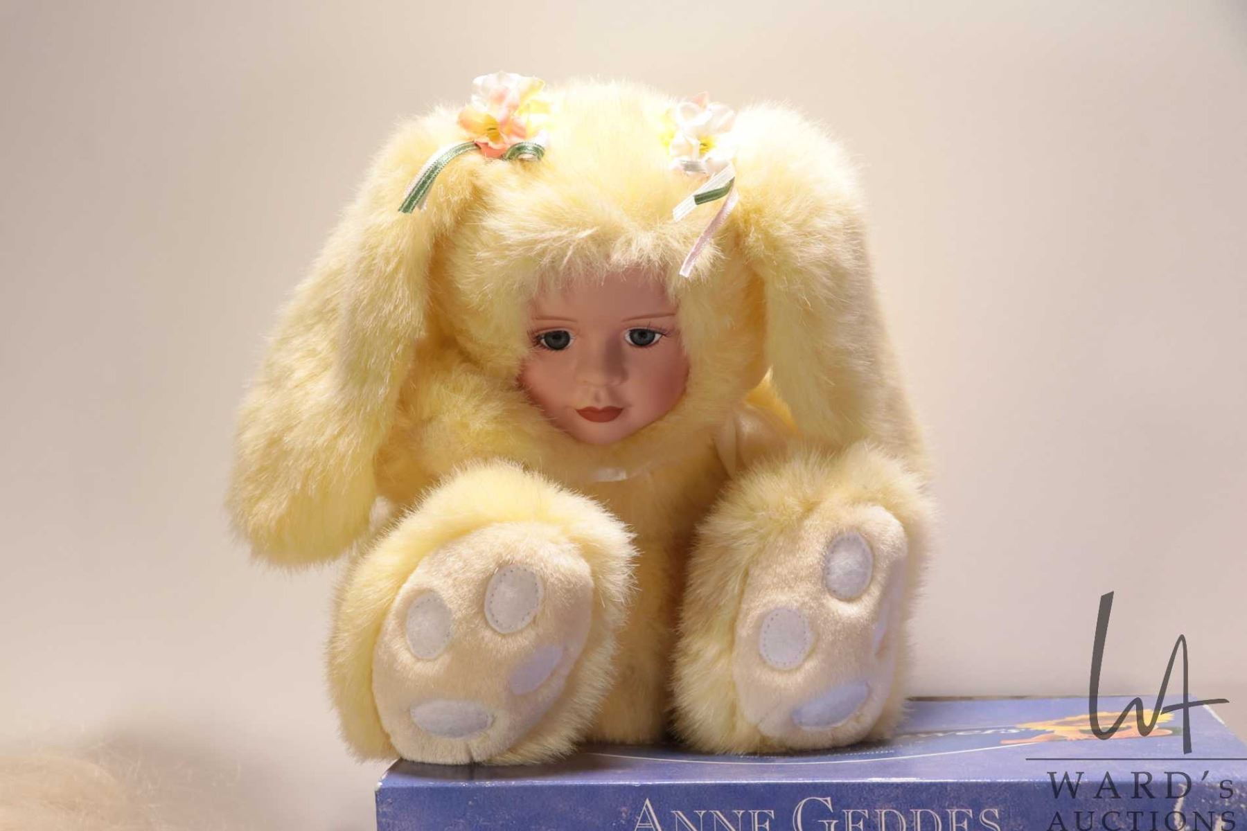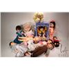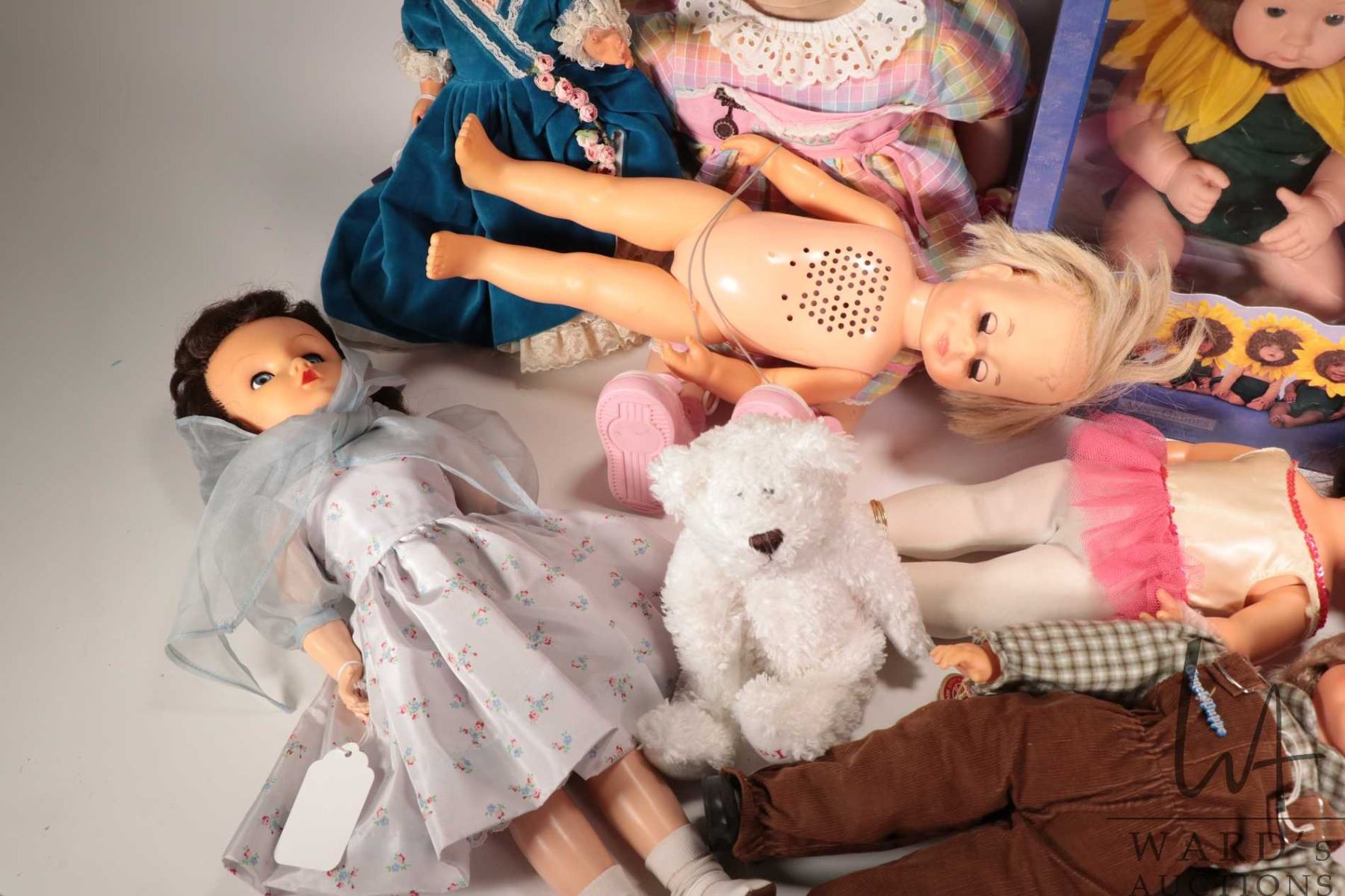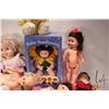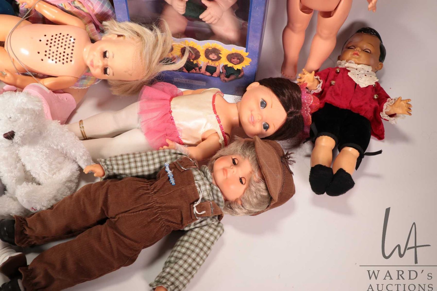 Box of vintage dolls including Cricket doll Anne Geddes Sunflower doll, two Ballerina dolls etc.