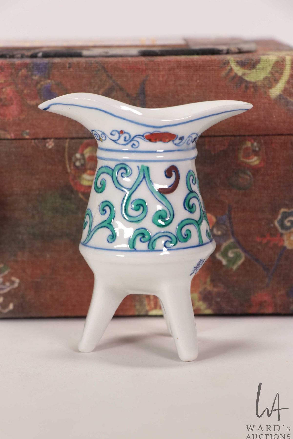 Boxed Famille verte tea pieces