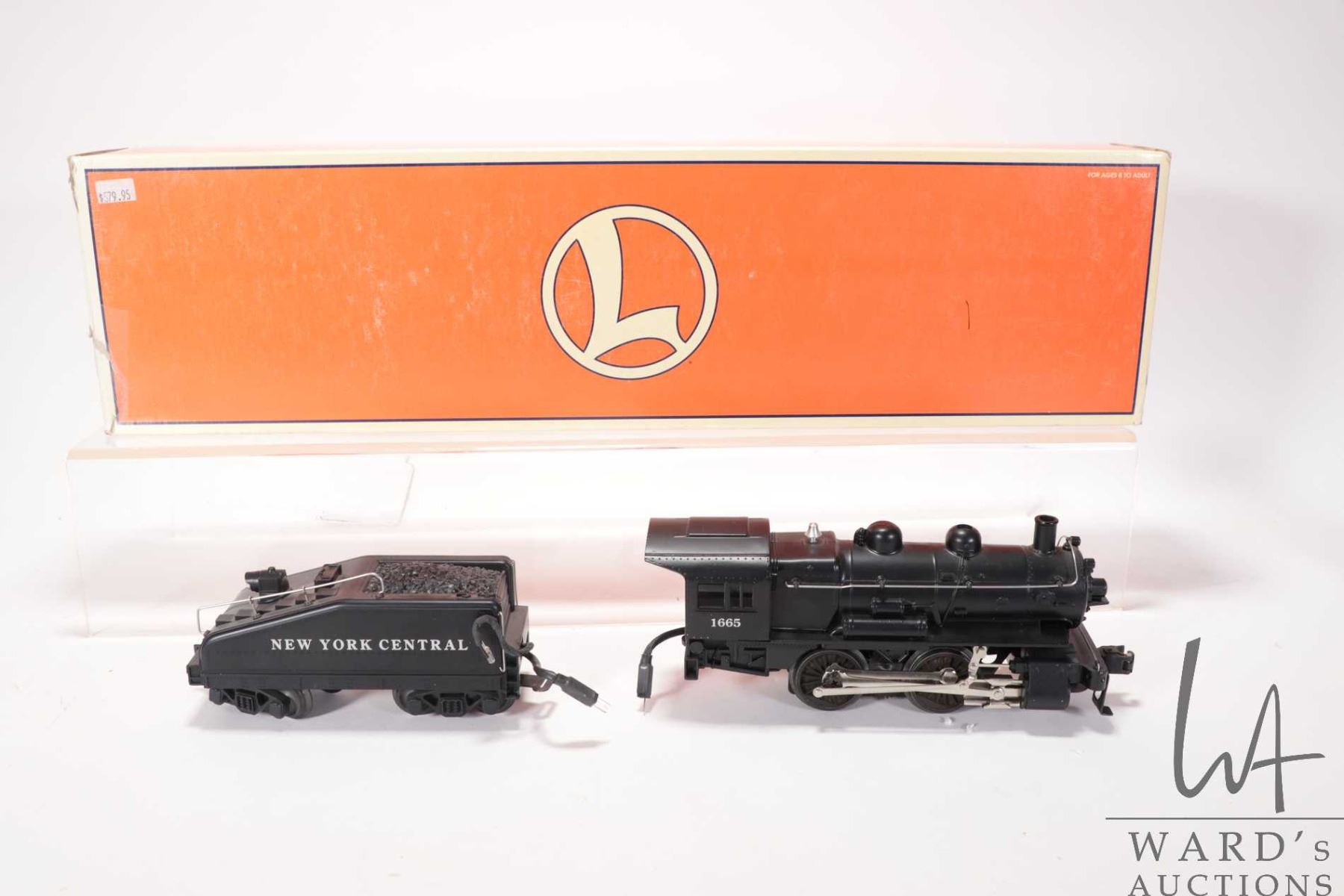 Boxed Lionel O scale 0-4-0 diesel locomotive no. 1665 and New York Central tender, in gently used condition, non-original box