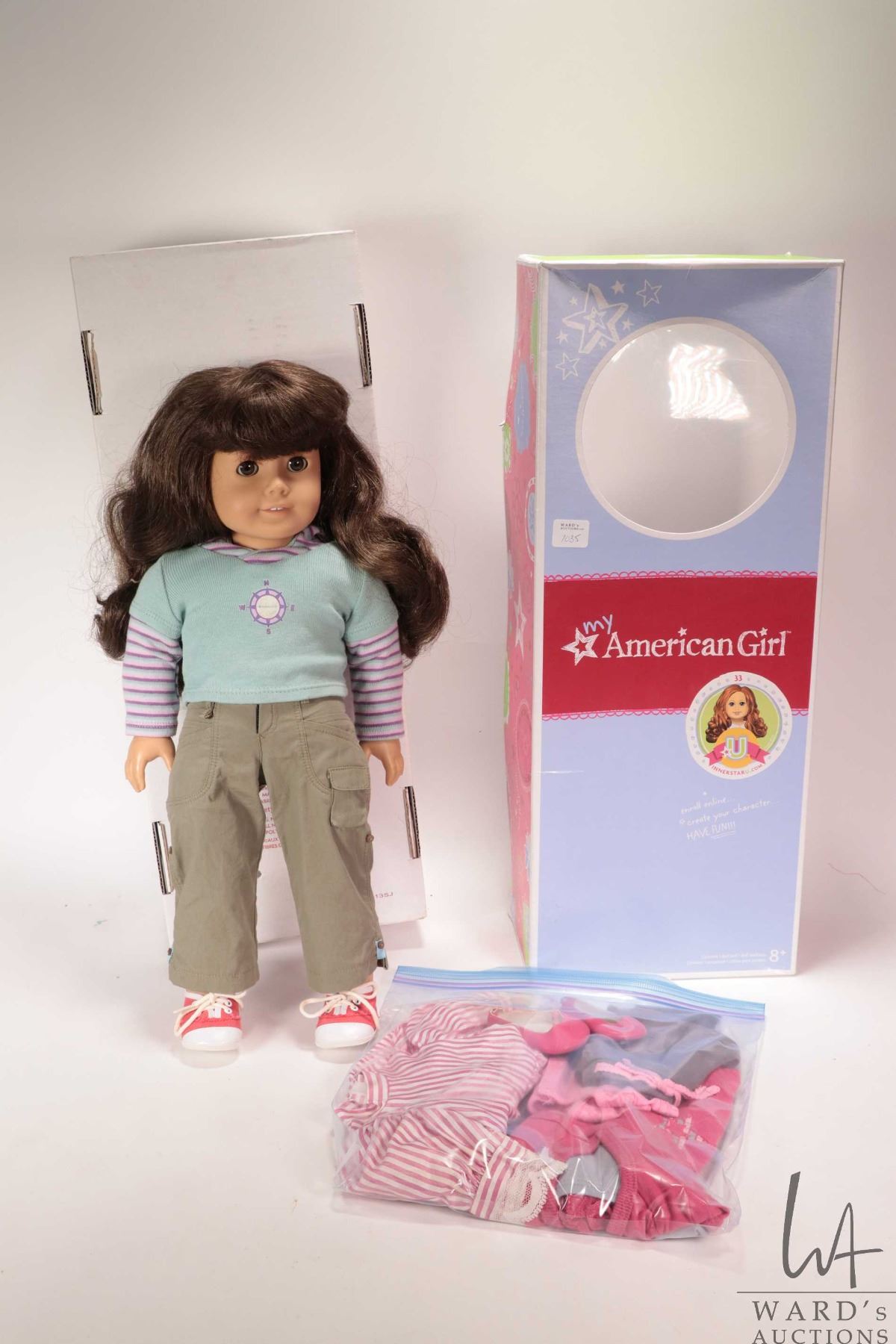 Boxed Mattel American Girl Samantha with a selection of American Girl tagged clothing