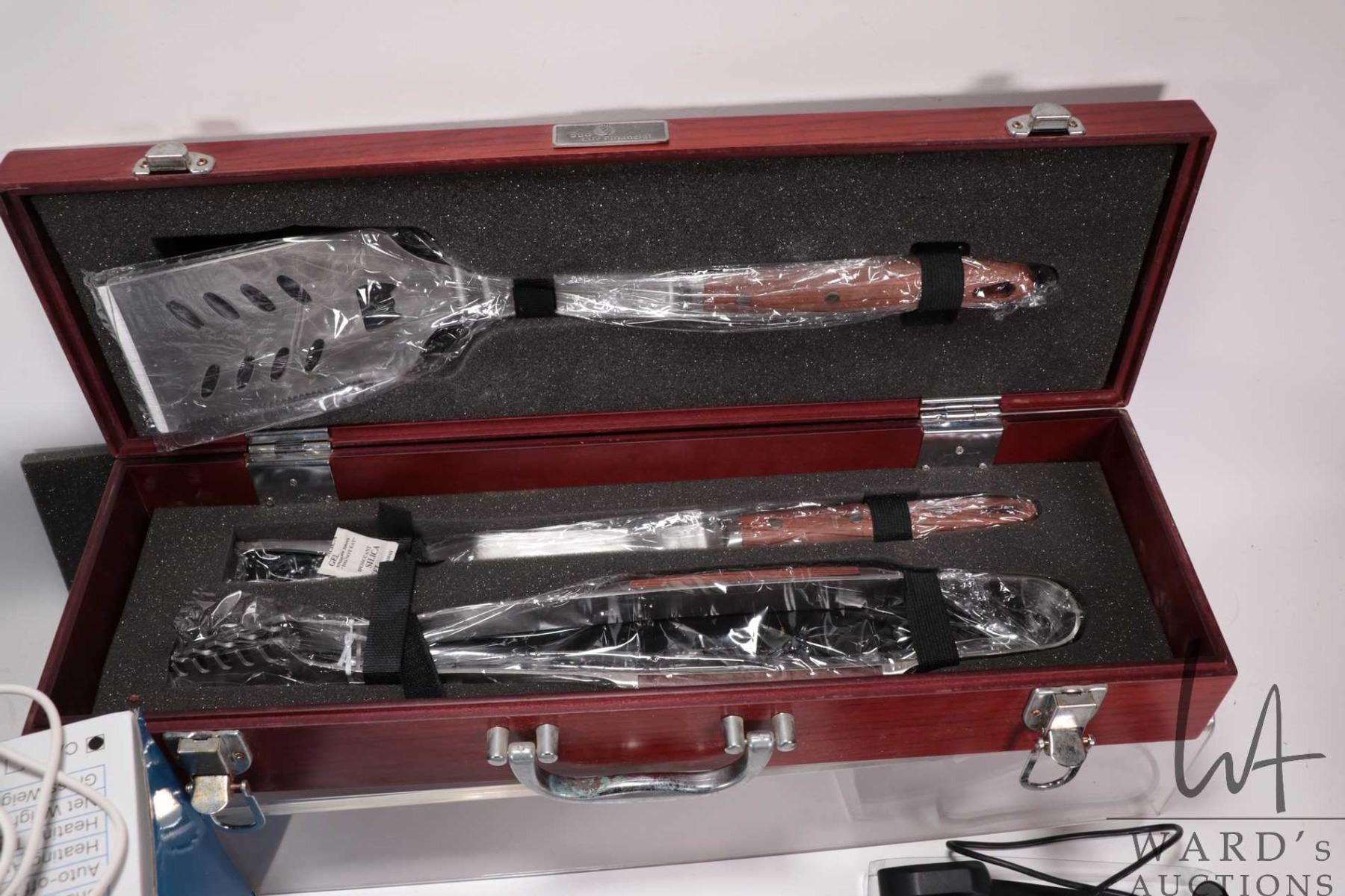Boxed barbeque tool set, Garmin "Approach S-3" golfing watch with charger, working at time of catalo
