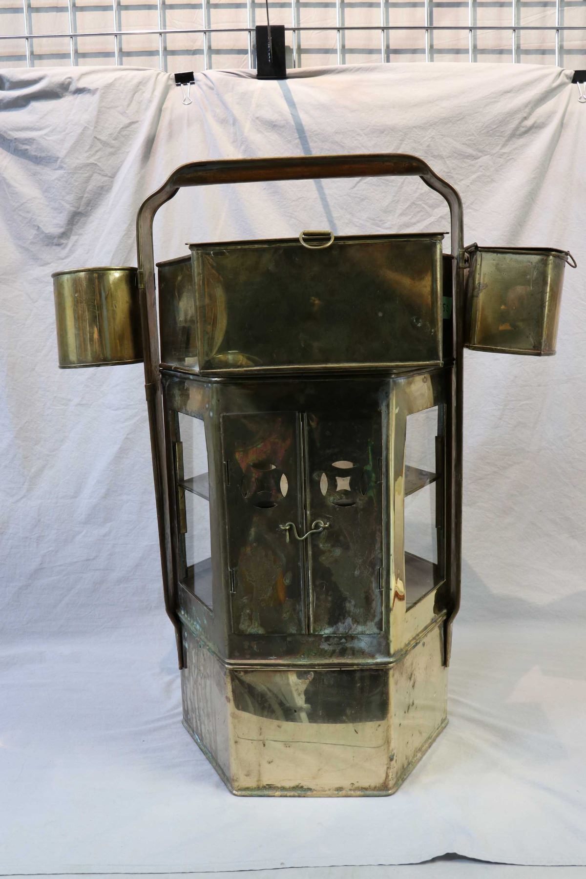 Brass and glass Oriental noodle maker/cart with accessories and cart 27" in height