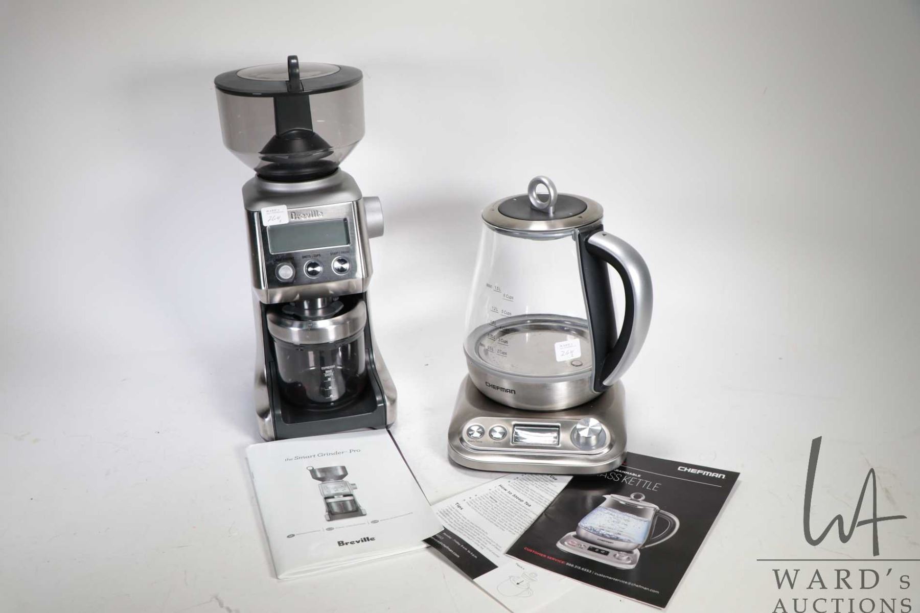 Breville "the Smart Grinder Pro" coffee grinder and a Chefman 1.5 ltr. programmable glass kettle- both working at time of cataloguing