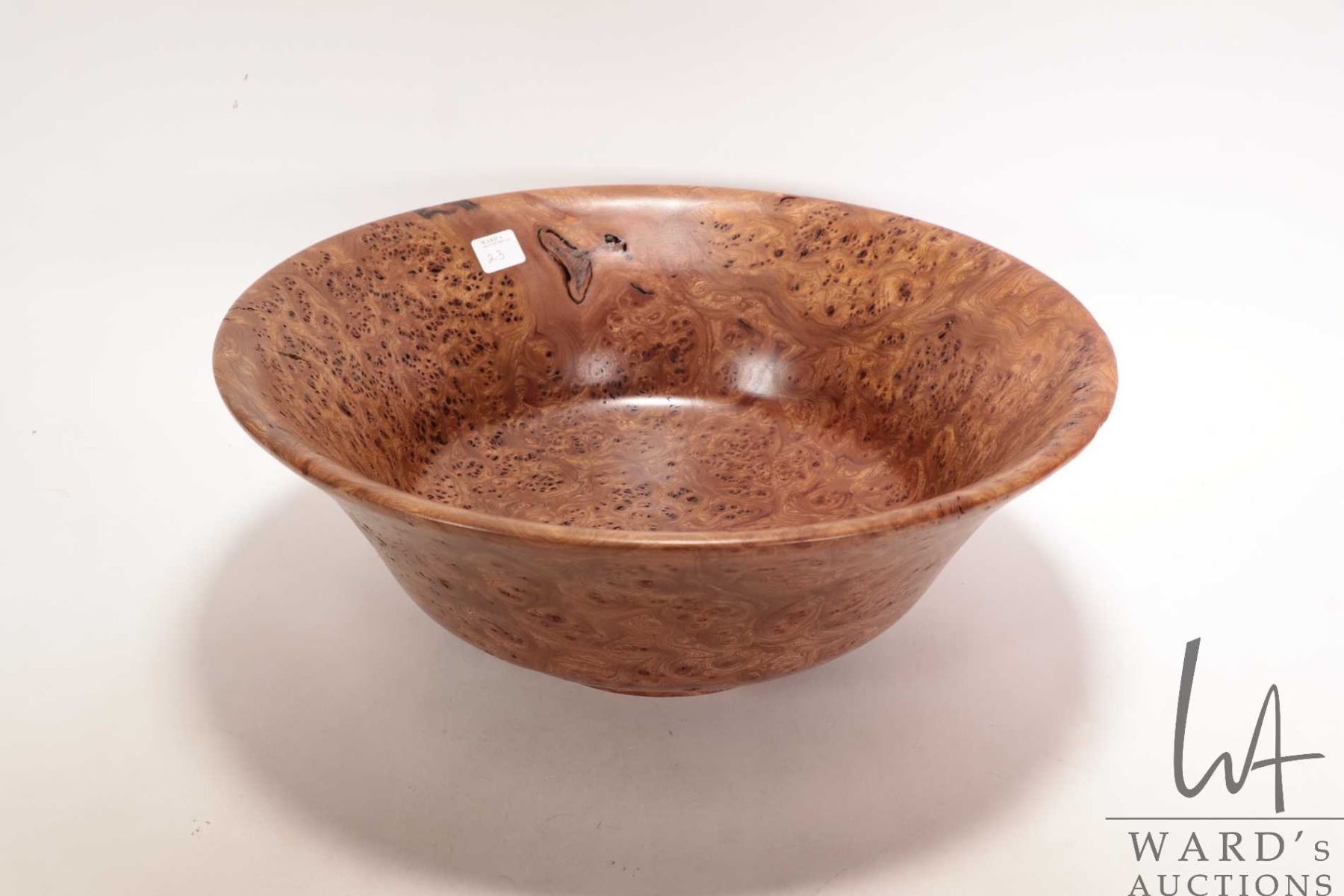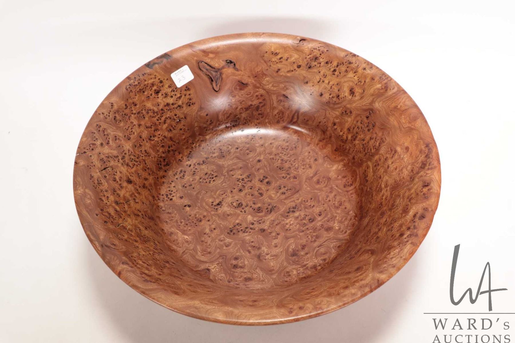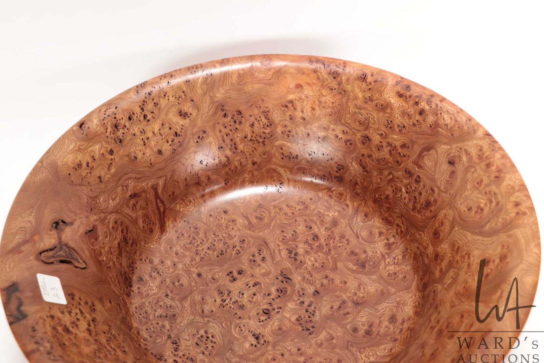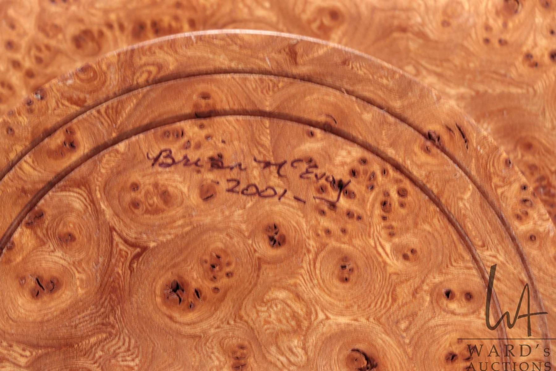 Brian McEvoy, artisan made decorative Carpathian Elm turned bowl, 15" in diameter X 6" in height. Signed by artist and numbered 516 by artist and dated 2001.
