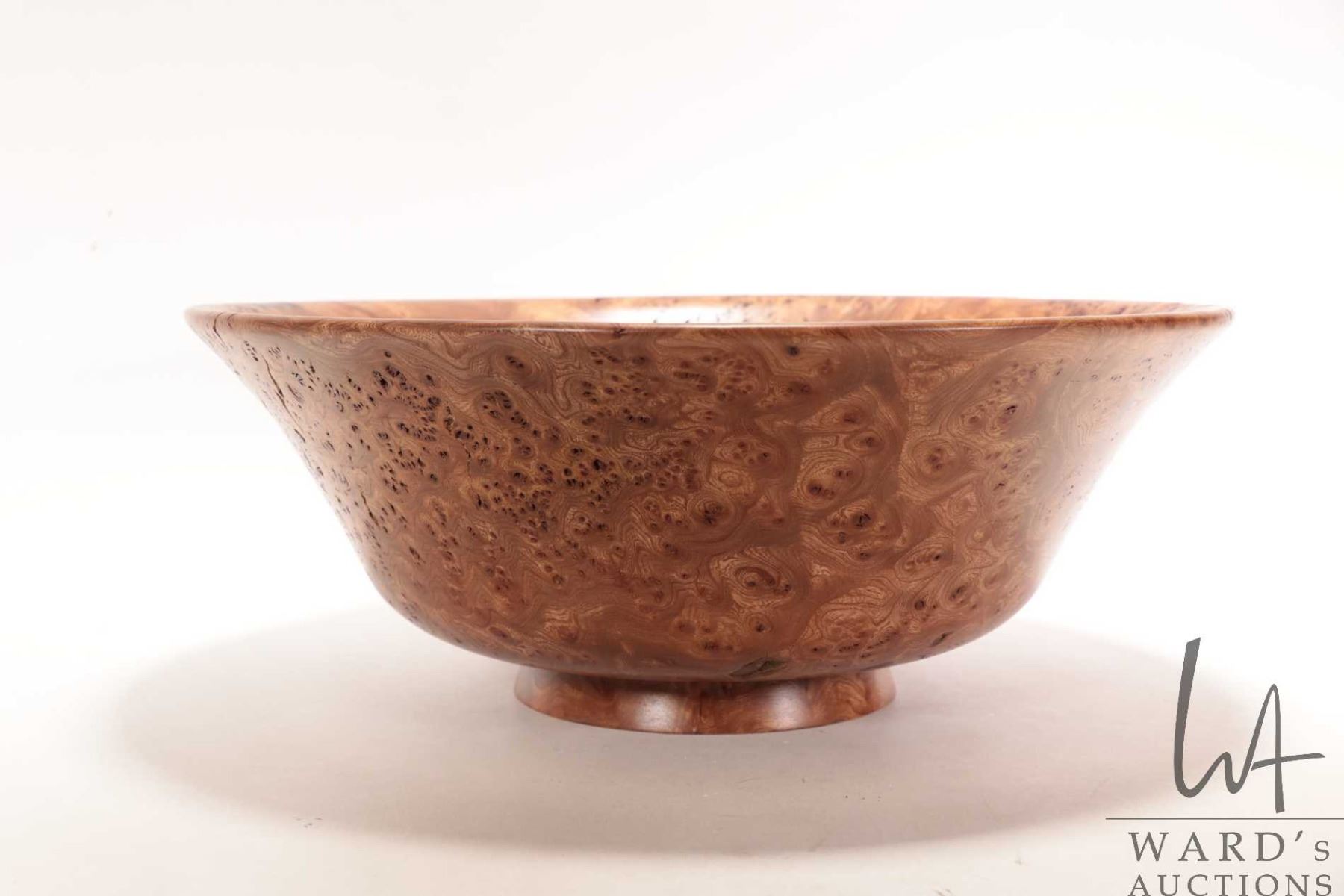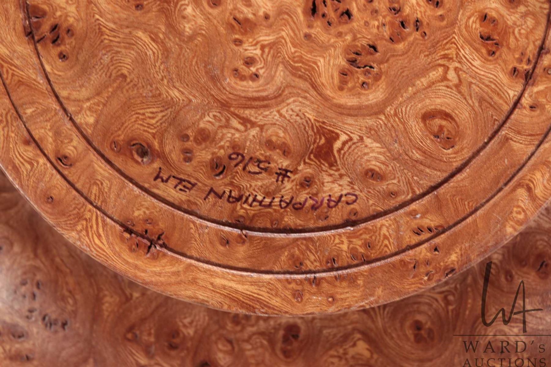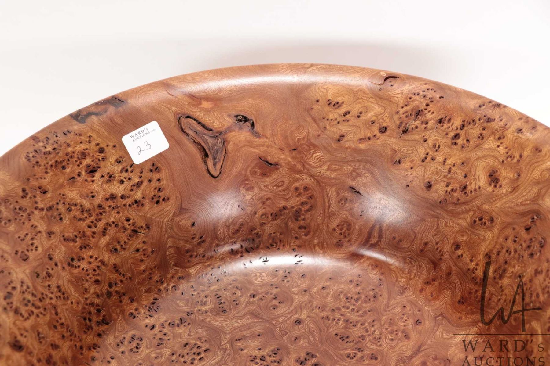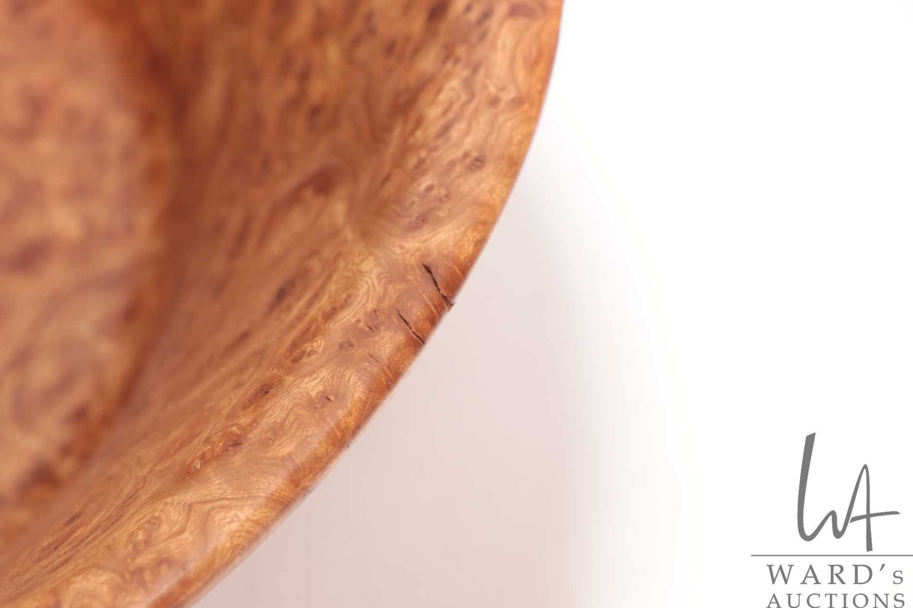 Brian McEvoy, artisan made decorative Carpathian Elm turned bowl, 15" in diameter X 6" in height. Signed by artist and numbered 516 by artist and dated 2001.