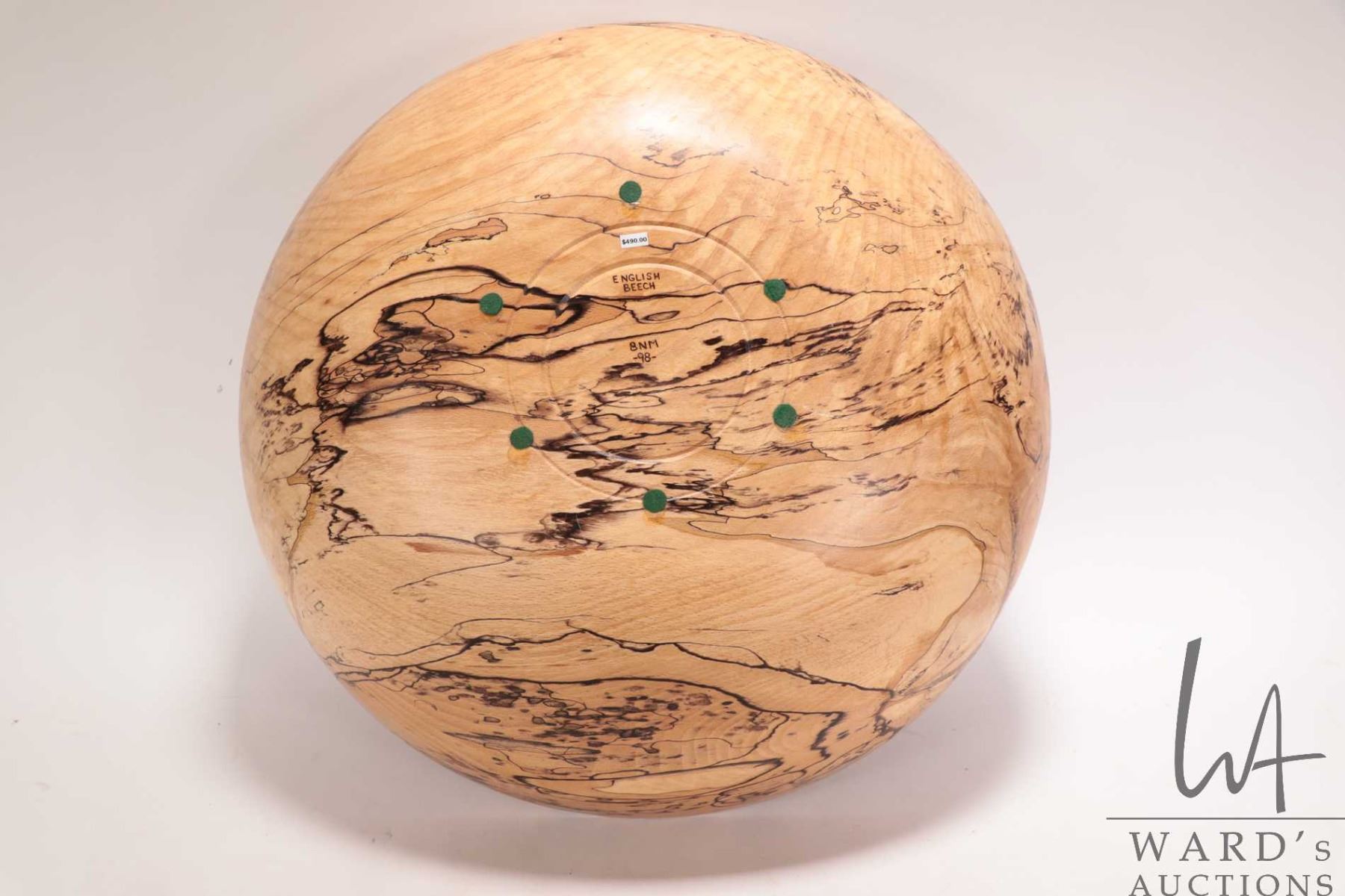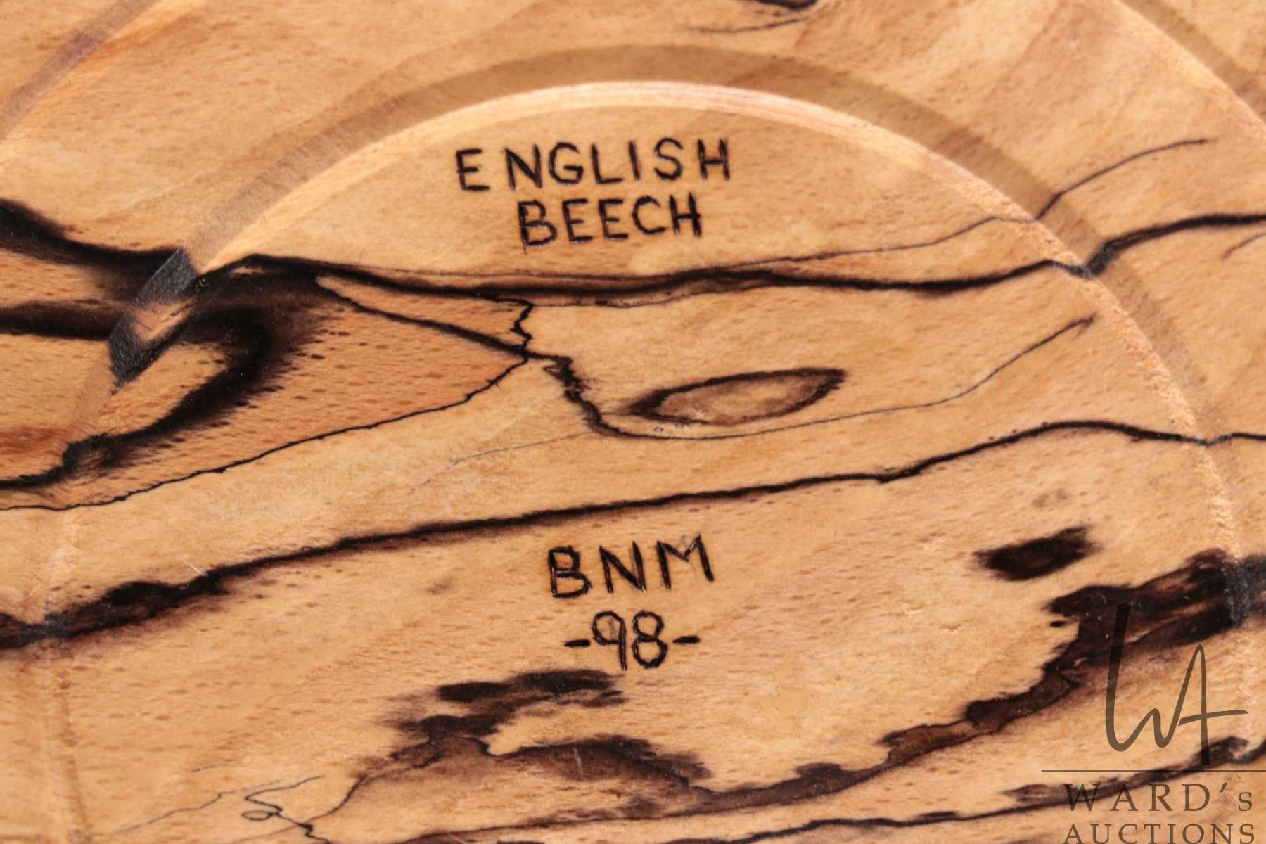 Brian McEvoy, artisan made decorative English beech turned wooden bowl, 16 1/2" in diameter X 5" hig