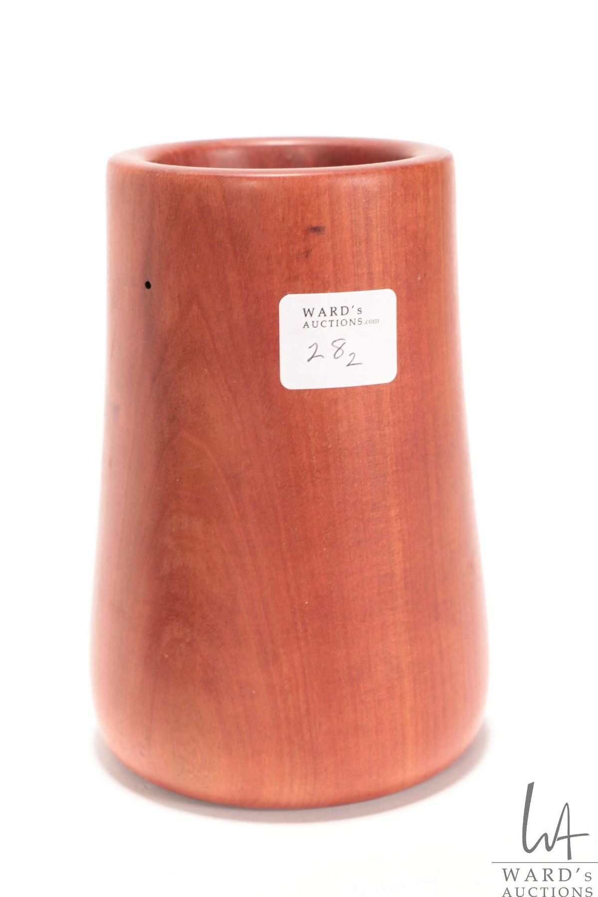 Brian McEvoy, artisan made decorative Pink Ivory turned wooden 5 1/2" high vase. Initialed by artist