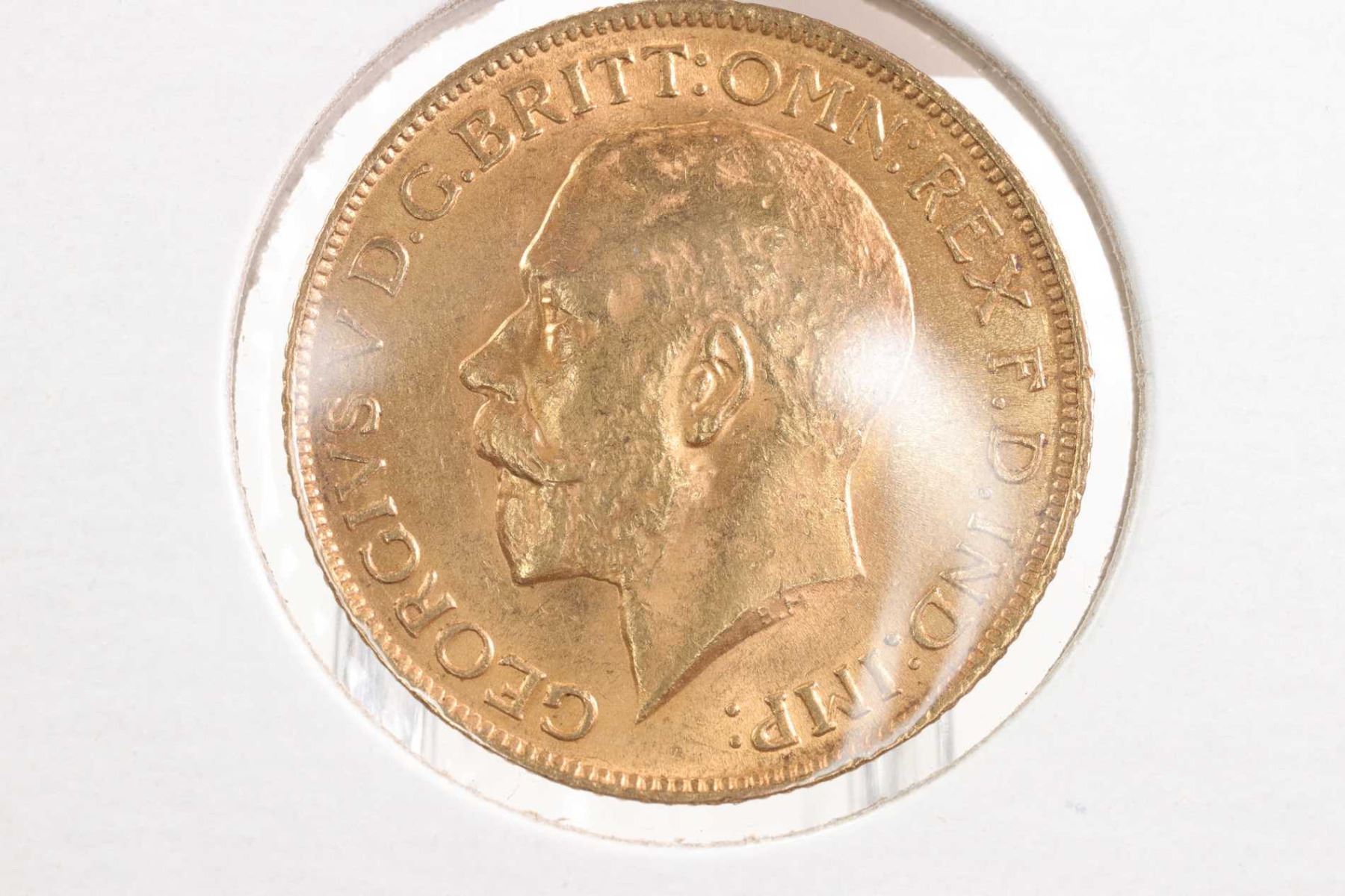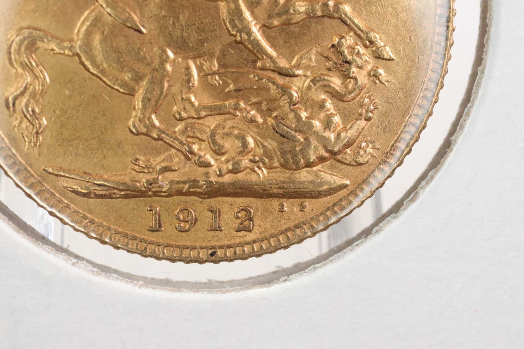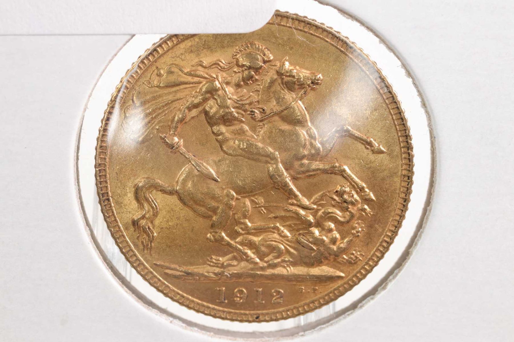 British 1912, 22kt gold sovereign coin with George V on obverse George and the dragon on reverse