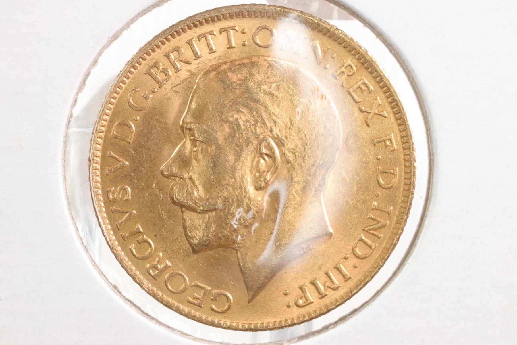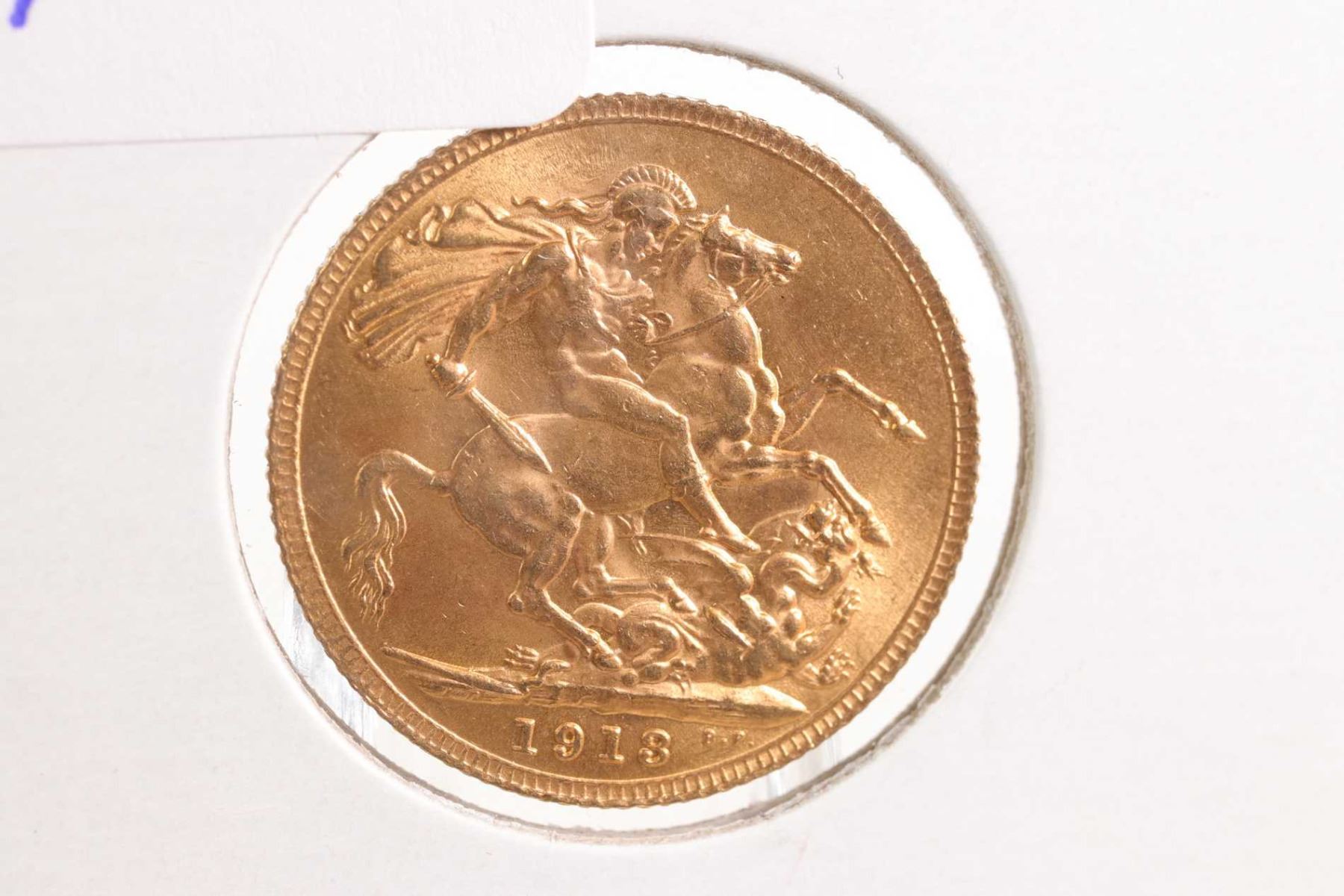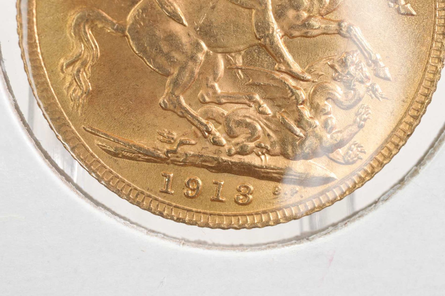 British 1913, 22kt gold full sovereign coin with George V on obverse George and the dragon on reverse