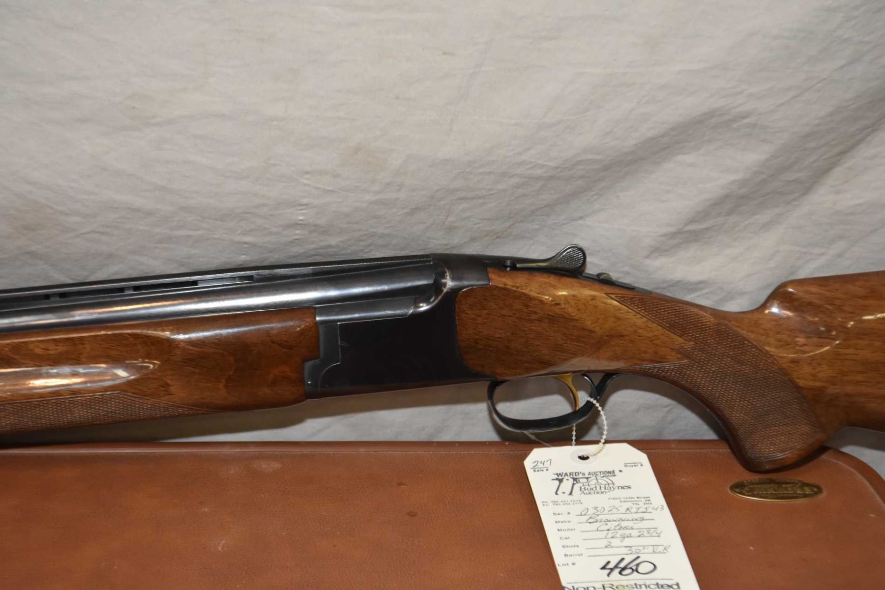 Browning Model Citori .12 Ga 2 3/4" Over & Under Break Action Shotgun w/ 30" vent rib bbls [ blued finish, single set trigger, ejector, high gloss finished checkered pistol grip stock, butt appears cut and XLT recoil pad installed, few marks to wood and metal in Browning fitted luggage style case ] Ser # 03025RTJ43