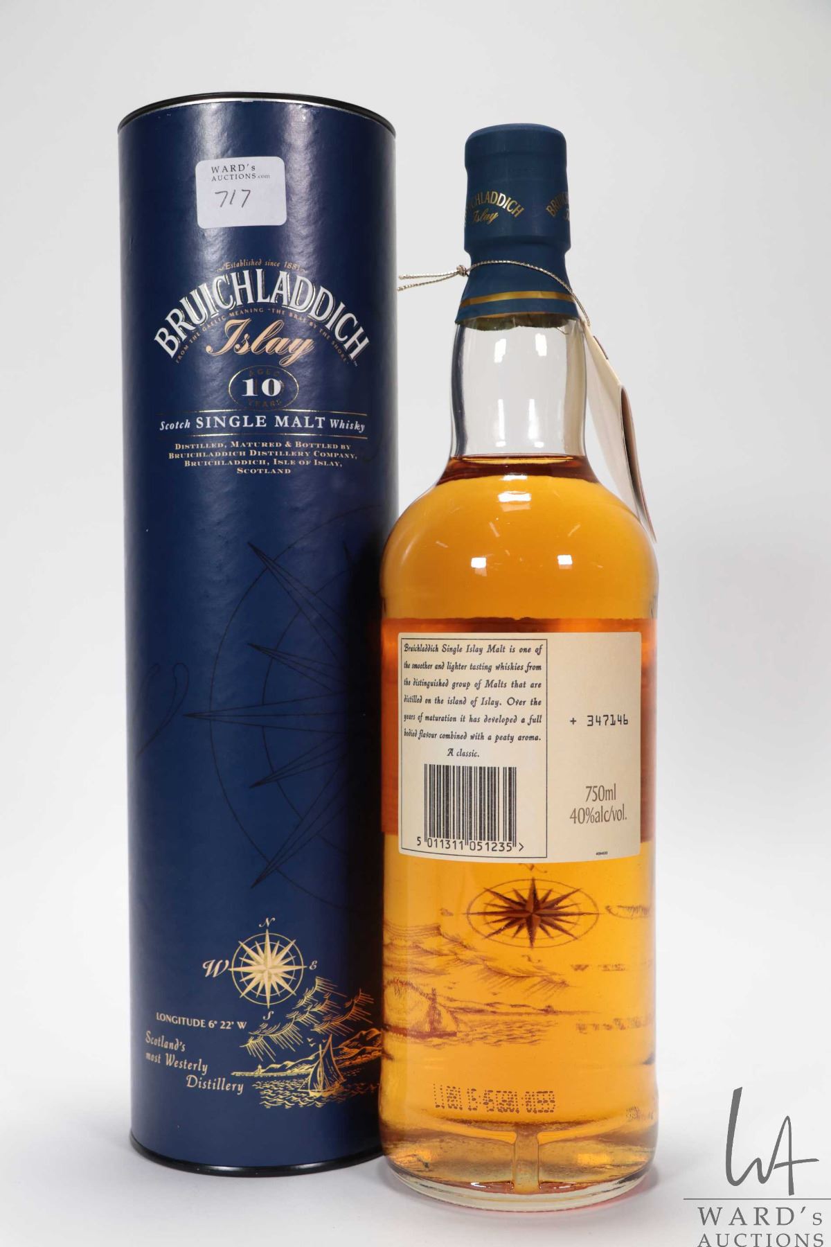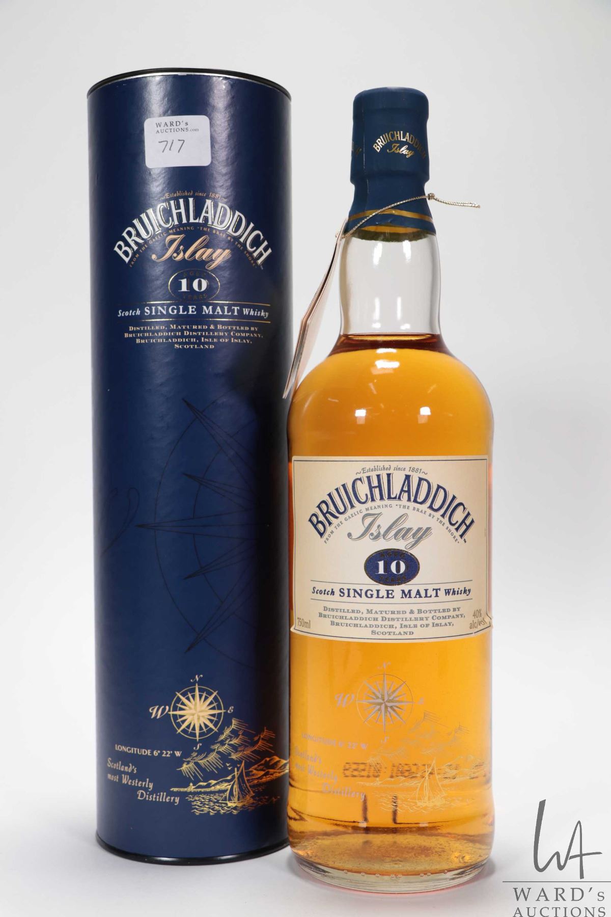 Bruichladdich/ 10 Year Old/ Single Malt Scotch Whisky/ 750ml/ 40% ABV Note: 1990's bottling before Mark Reynier purchased the distillery. Written on cardboard tube and bottle "Scotland's Most Westerly Distillery". NOTE: Alcohol cannot be insured by any courier in Canada. Local pick up recommended. Canadian bidders only.