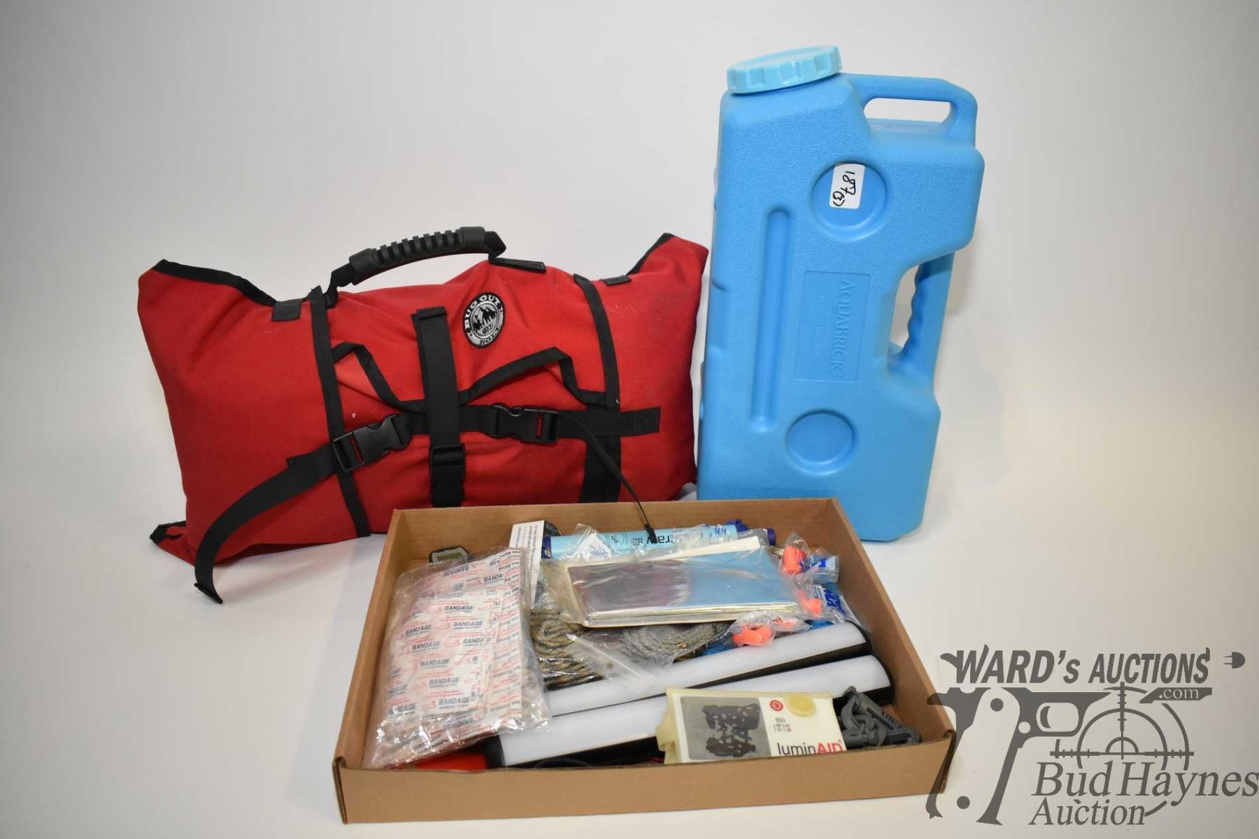 Bug Out bag full of emergency first-aid supplies & Bug Out bag full of emergency first-aid supplies & water jug, lights, water filter, blanket, etc