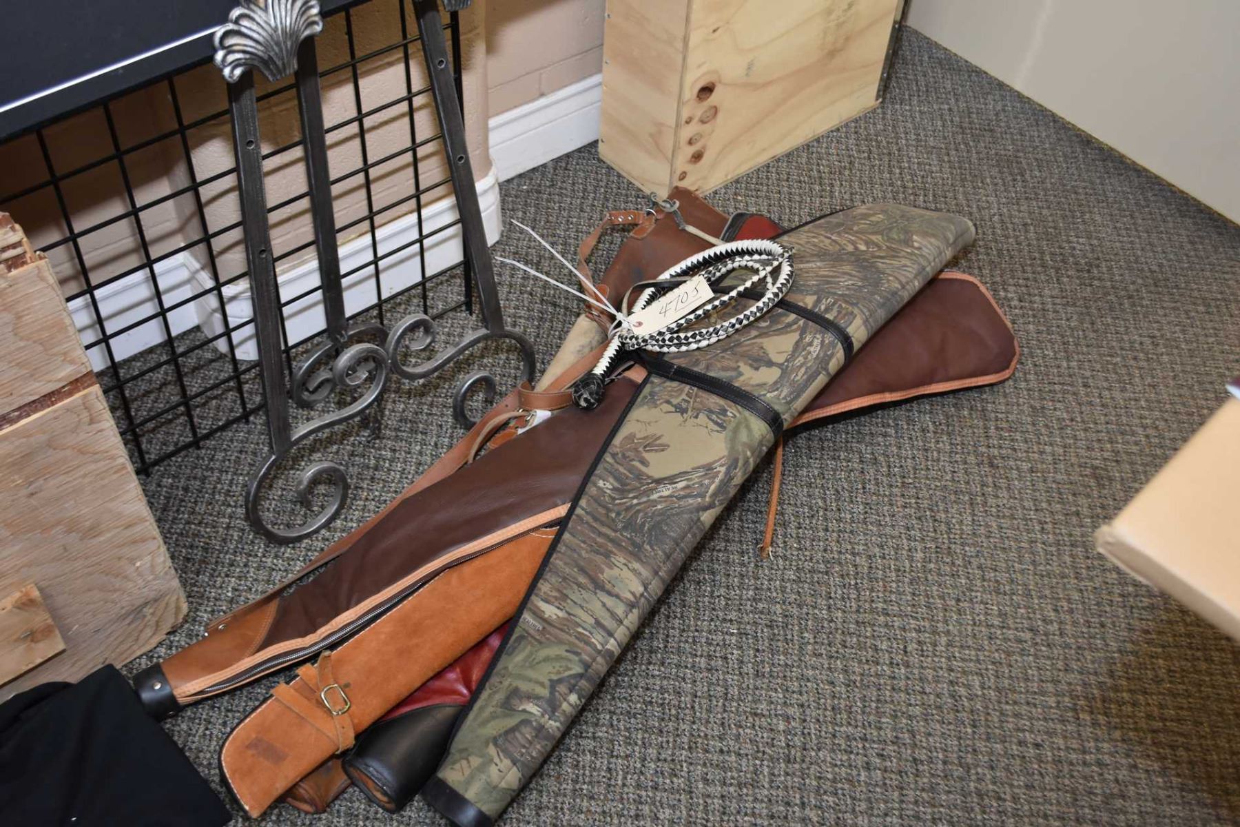 Bundle Lot : Five Gun Cases [ one is very poor ] & leather bull whip