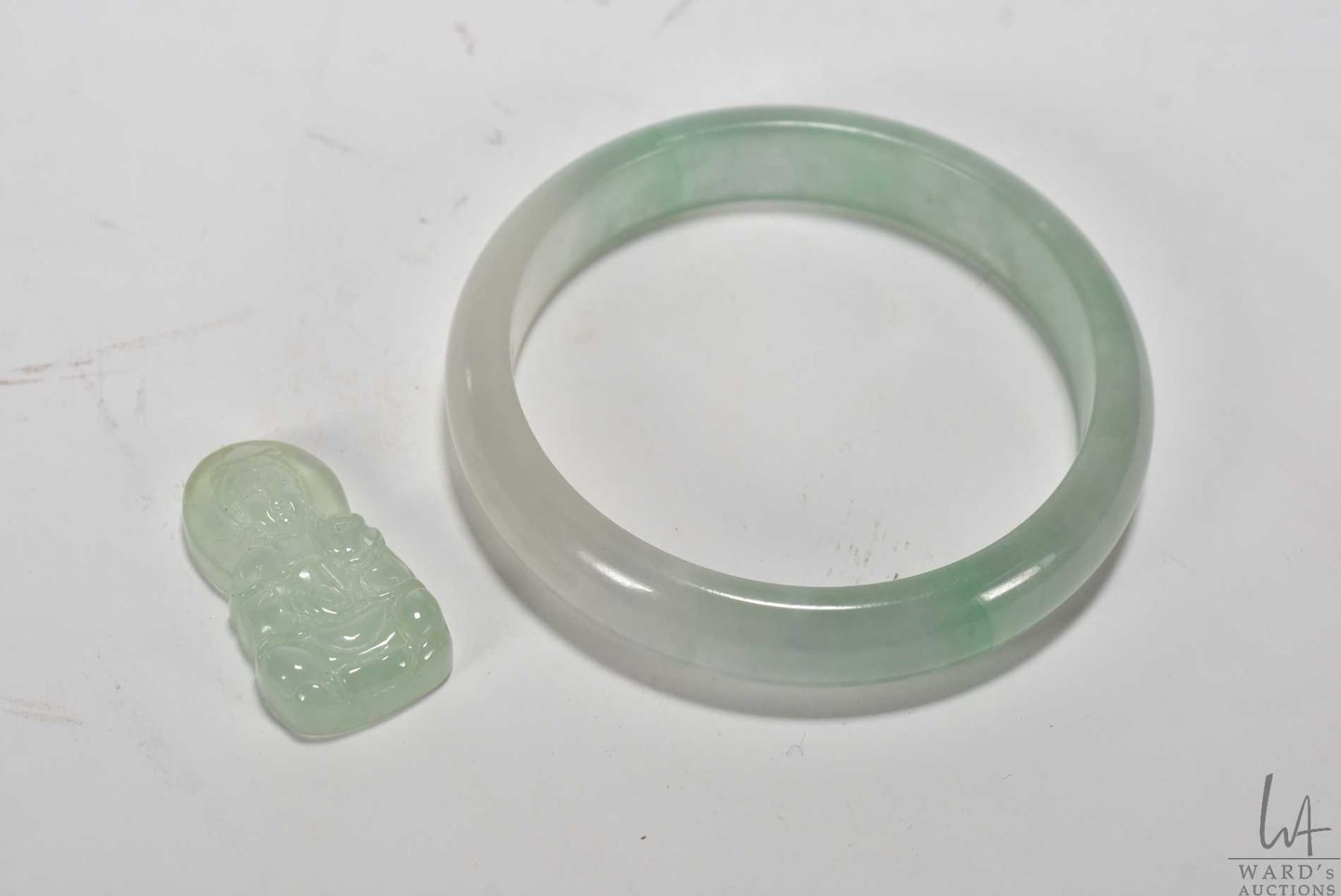 Burmese spinach jadite bangle and a jadeite Buddha pendant