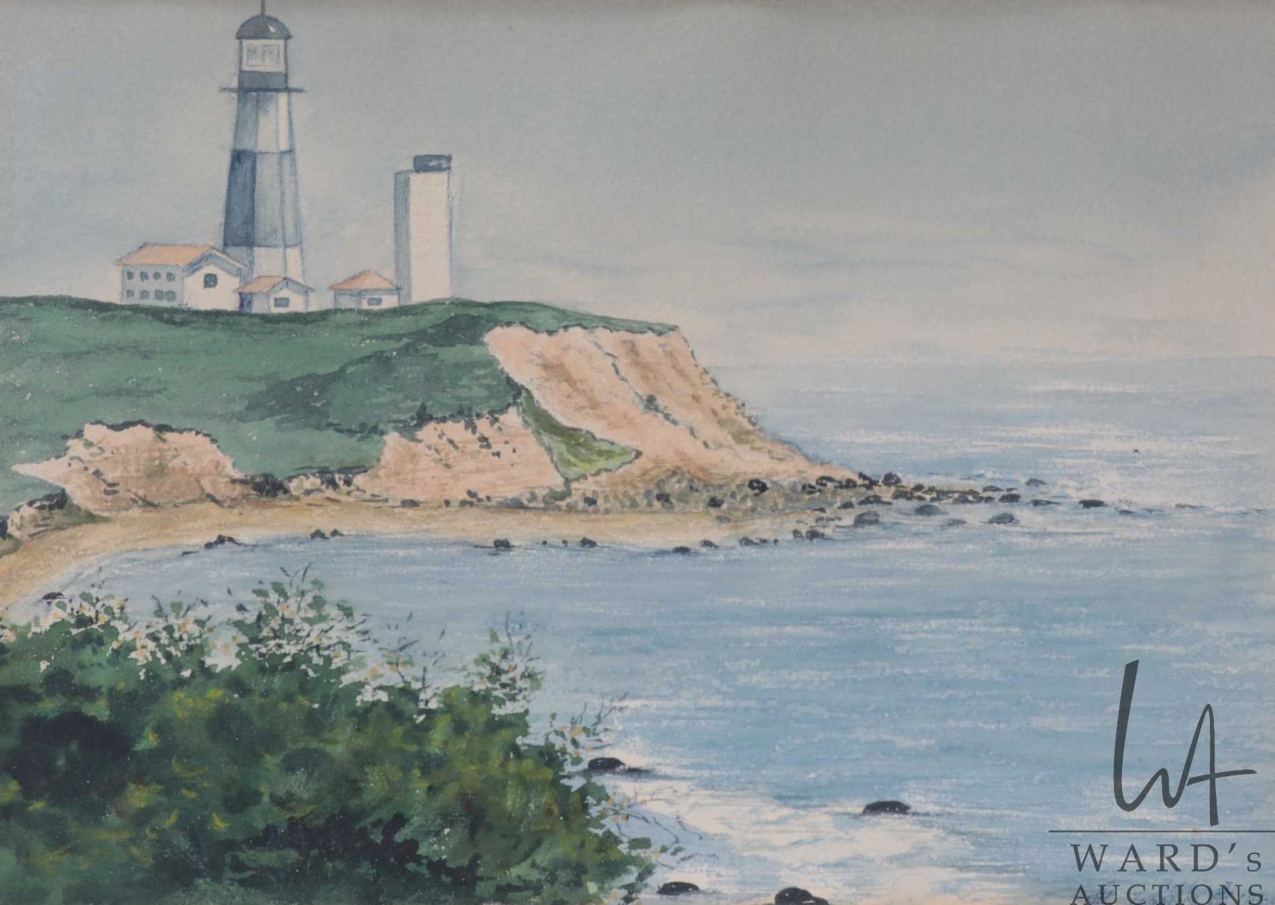 Butch Ingram, original watercolour painting of a lighthouse on a raggedy shore, 10" X 14"