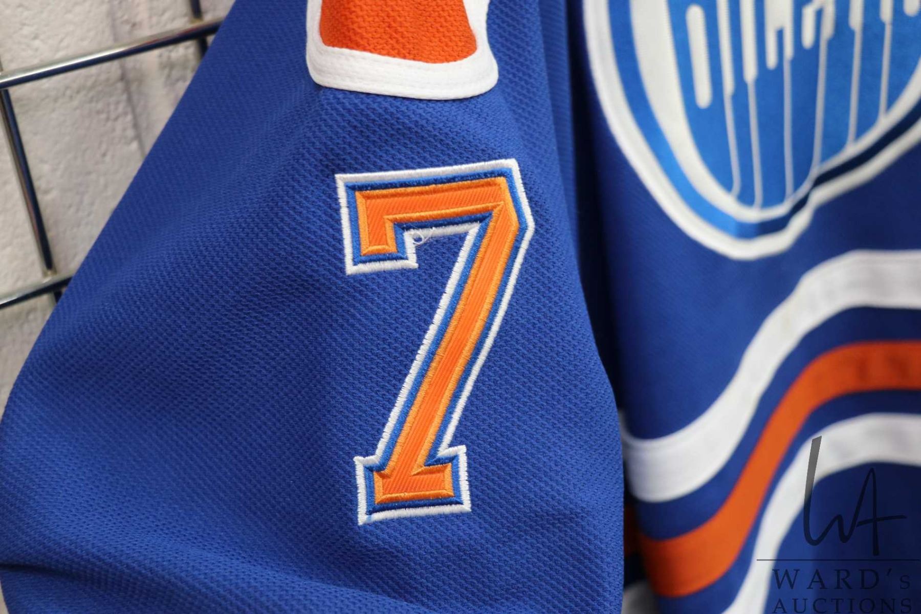 CCM Vintage Edmonton Oilers Paul Coffey No. 7 hockey jersey. Adult size 50. Note: some marks and staining