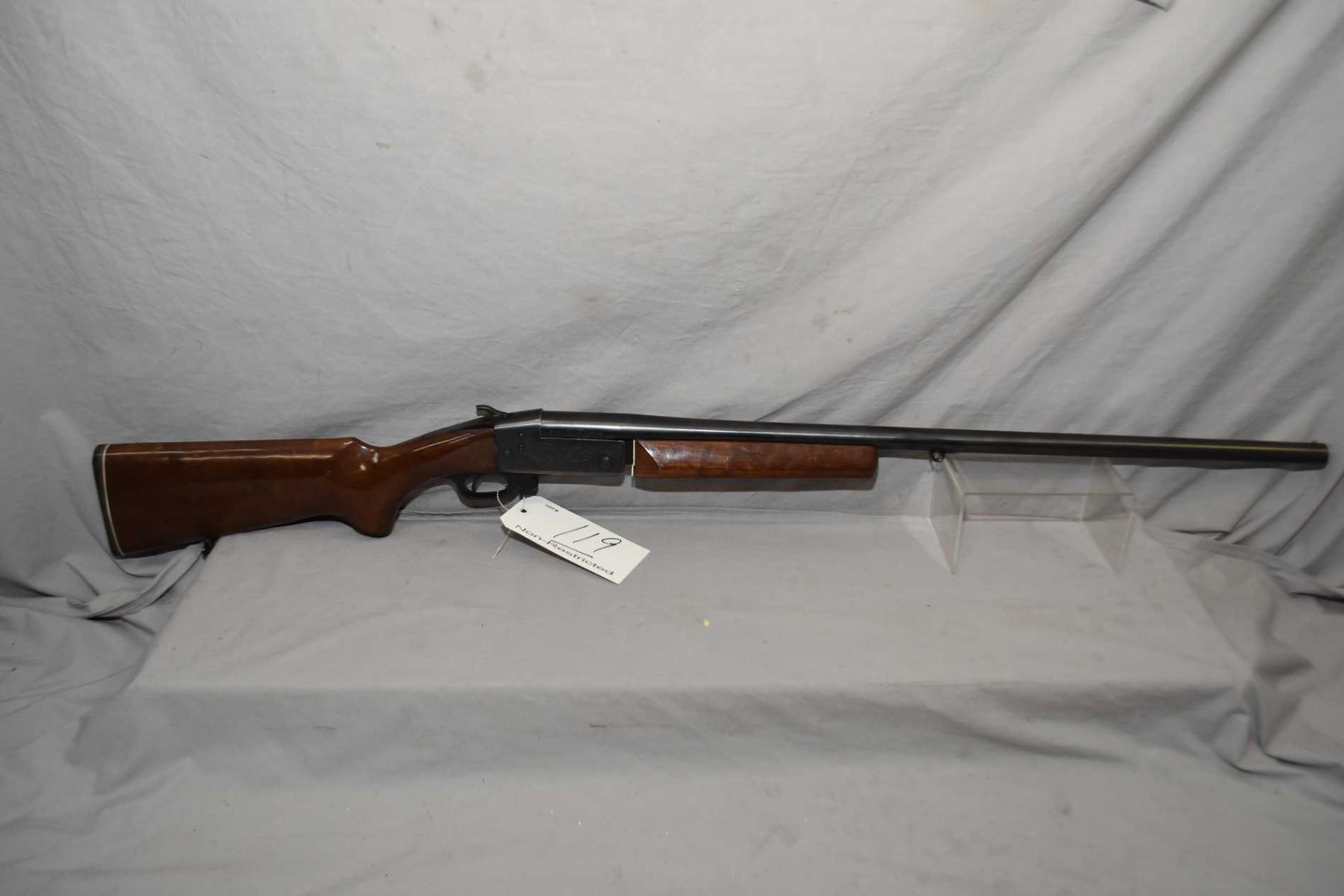 CIL Model 402 .12 Ga 2 3/4" Single Shot Break Action Shotgun w/ 30" full choke bbl [ blued finish, varnished pistol grip stock & forend w/ sling swivels, broken and missing plastic forend spacer, some marks and scratches to wood and metal ] Ser # 273640