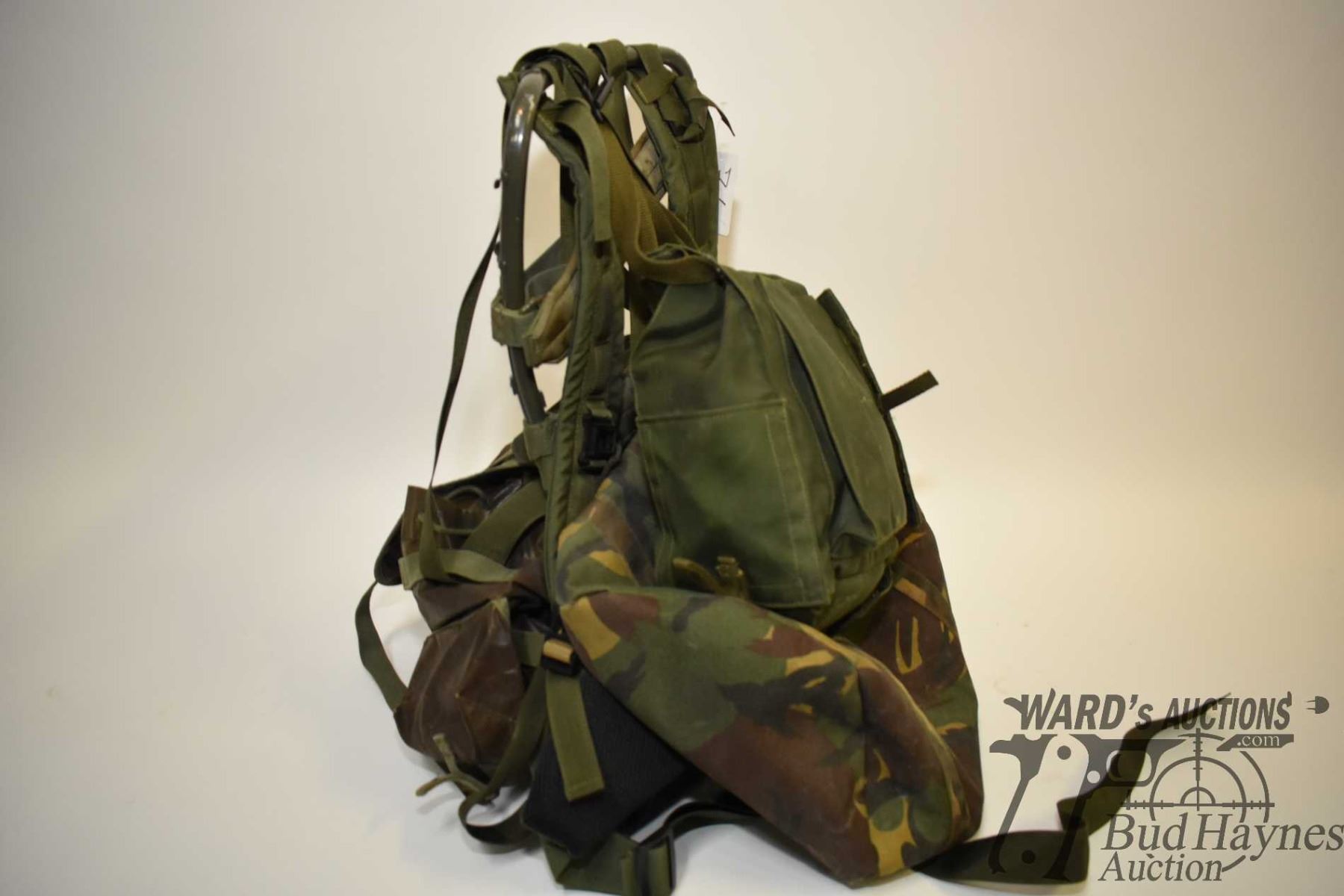 Camo metal frame backpack and gas mask Camo metal frame backpack and gas mask