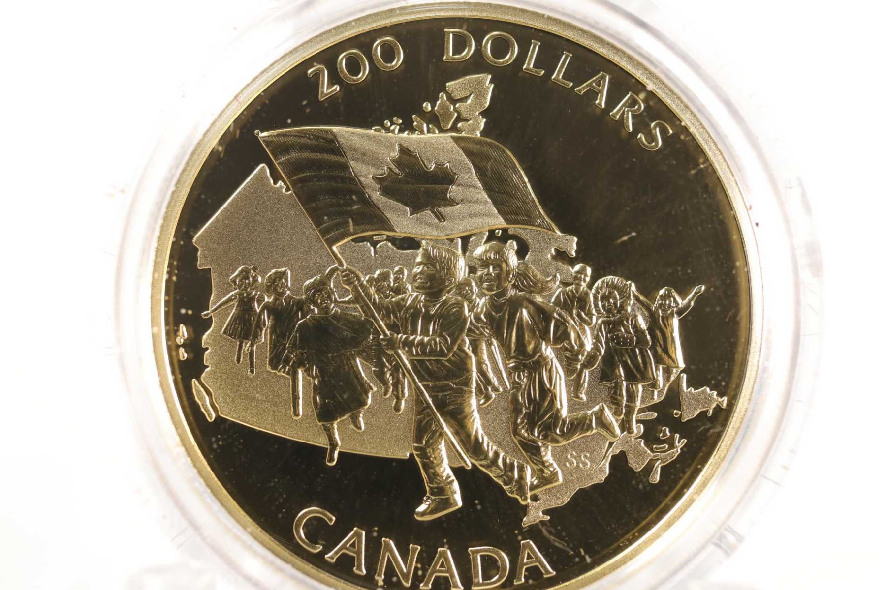 Canadian 1990 non-circulated $200 gold coin "The Canadian Flag's 25th Anniversary" , 17.135 grams of 22 kt gold