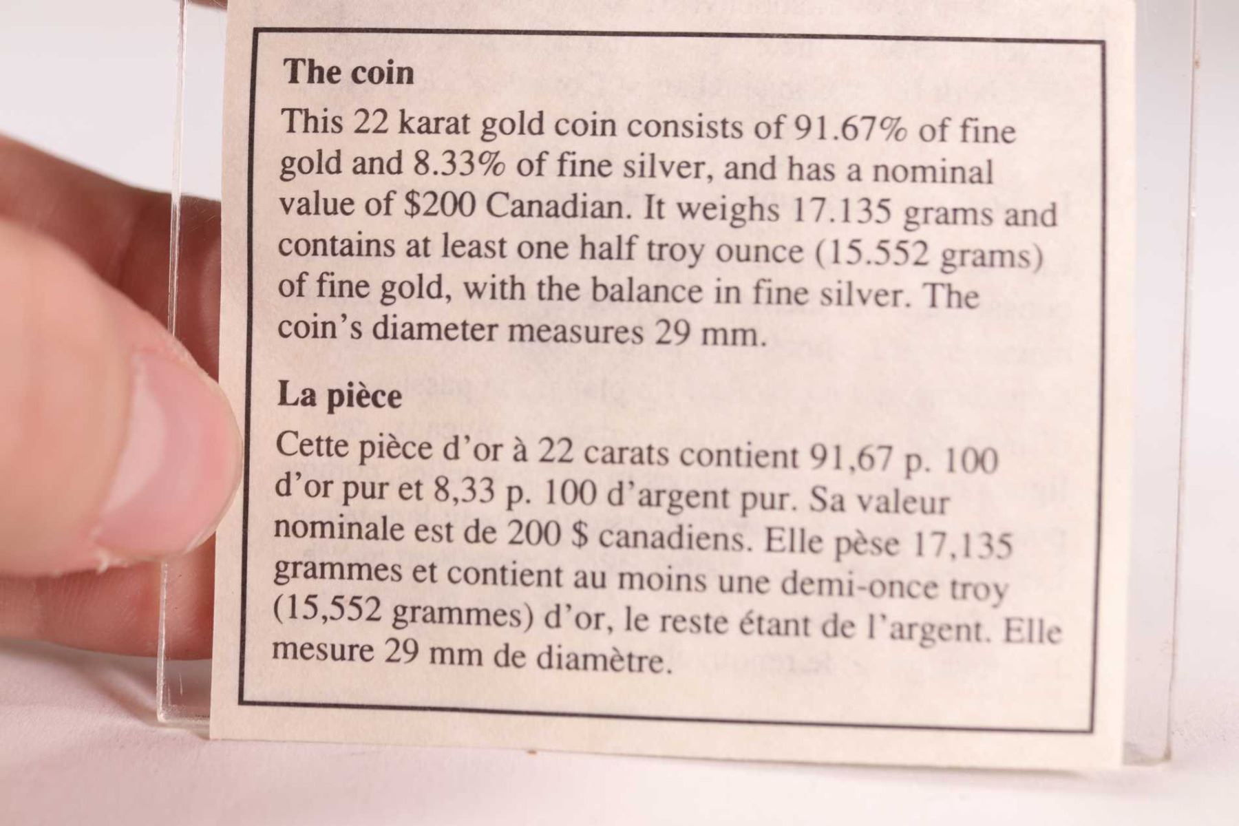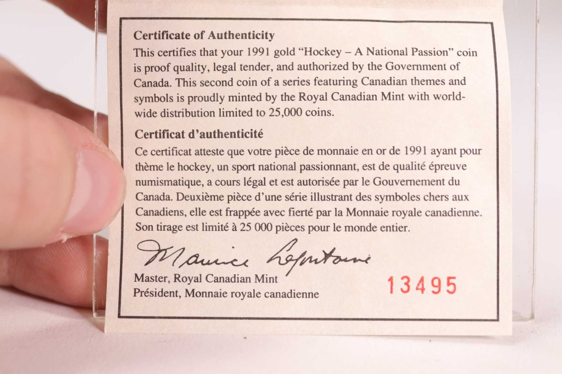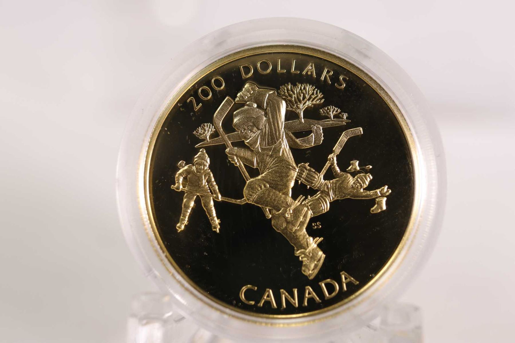 Canadian 1991 non-circulated $200 gold coin "Hockey a National Passion", 17.135 grams of 22kt gold