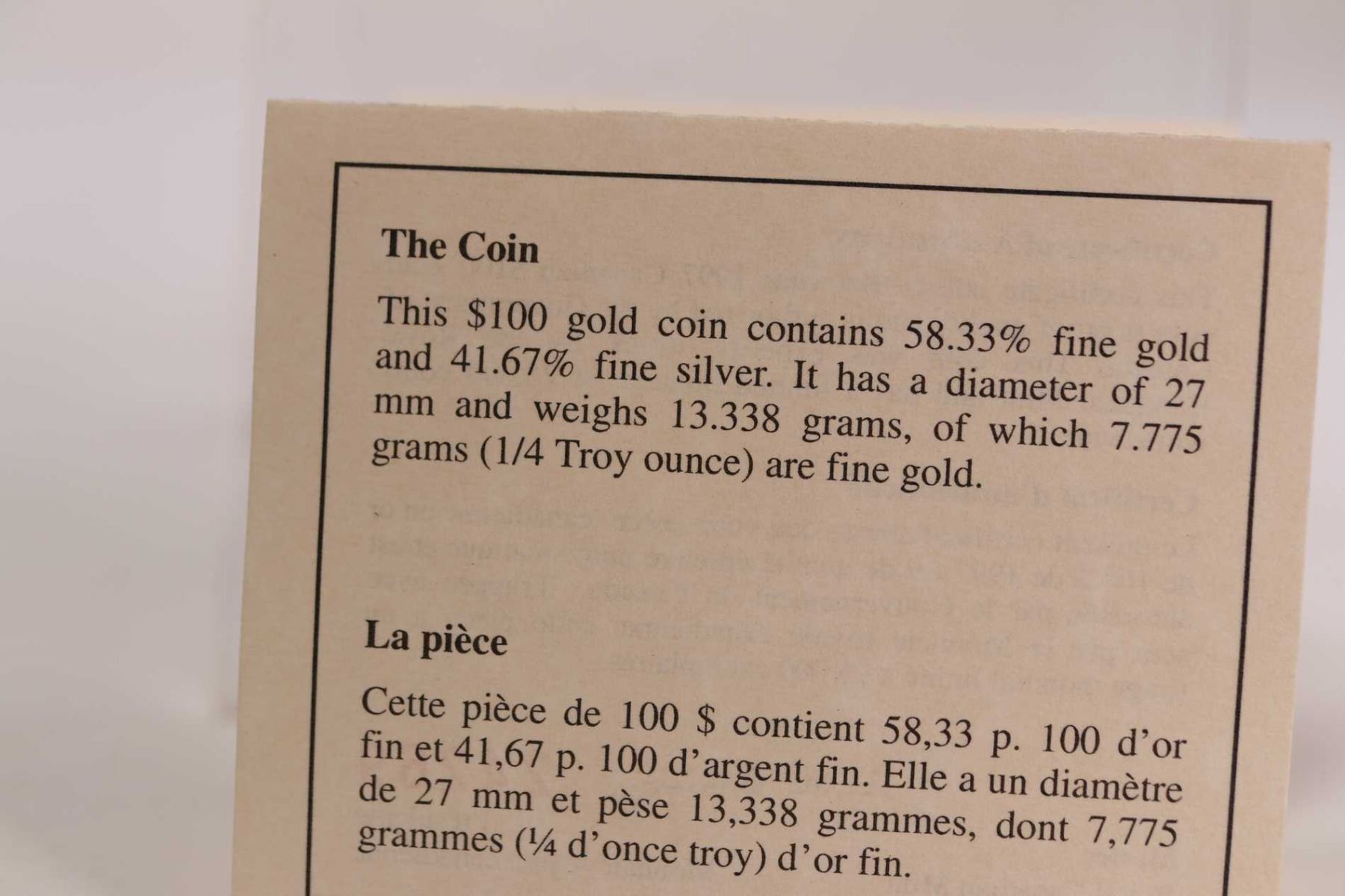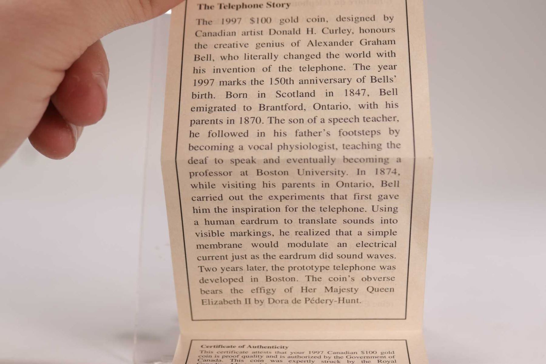 Canadian 1997 non- circulated $100 gold coin "The Telephone Story", 13.338 grams of 14kt gold