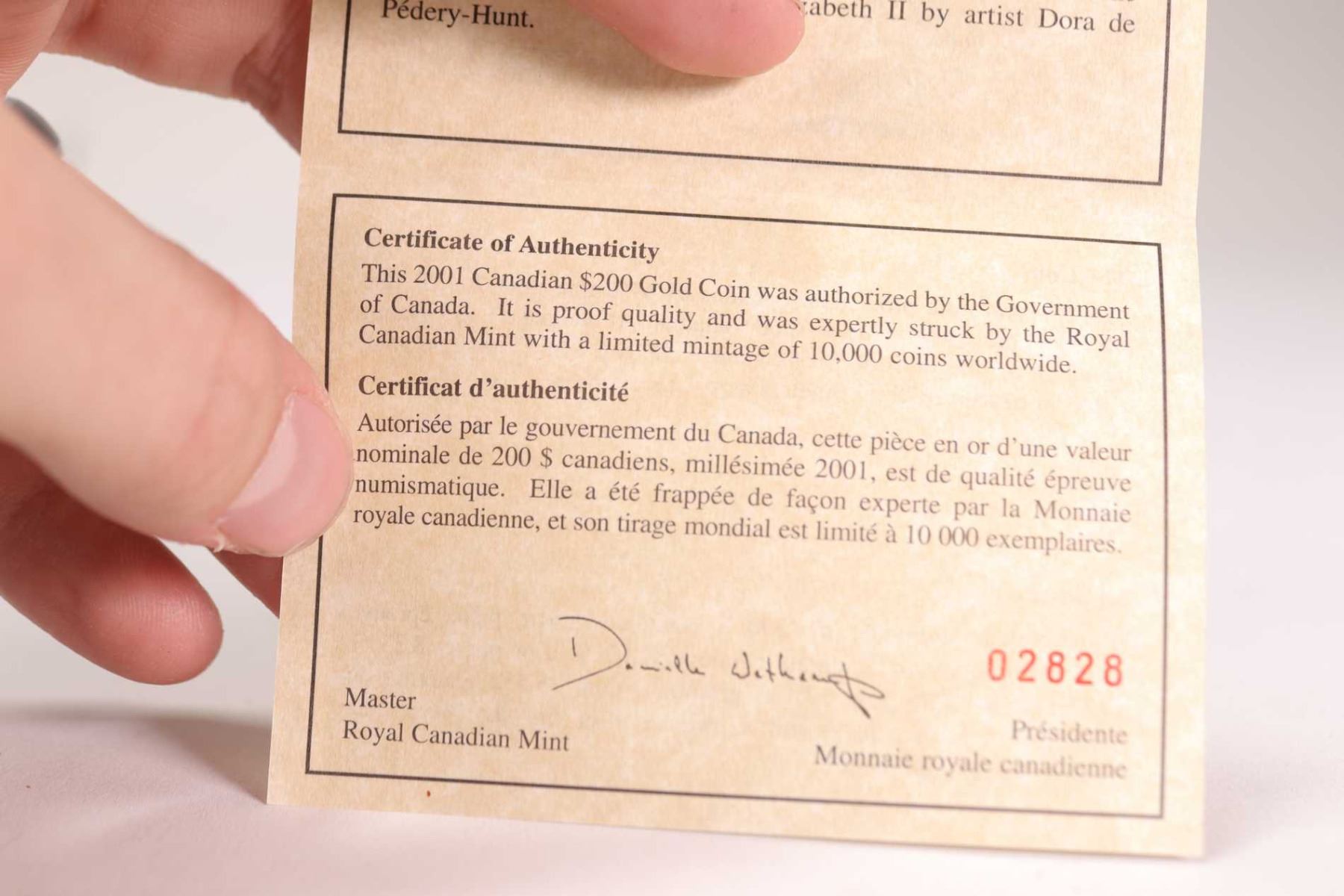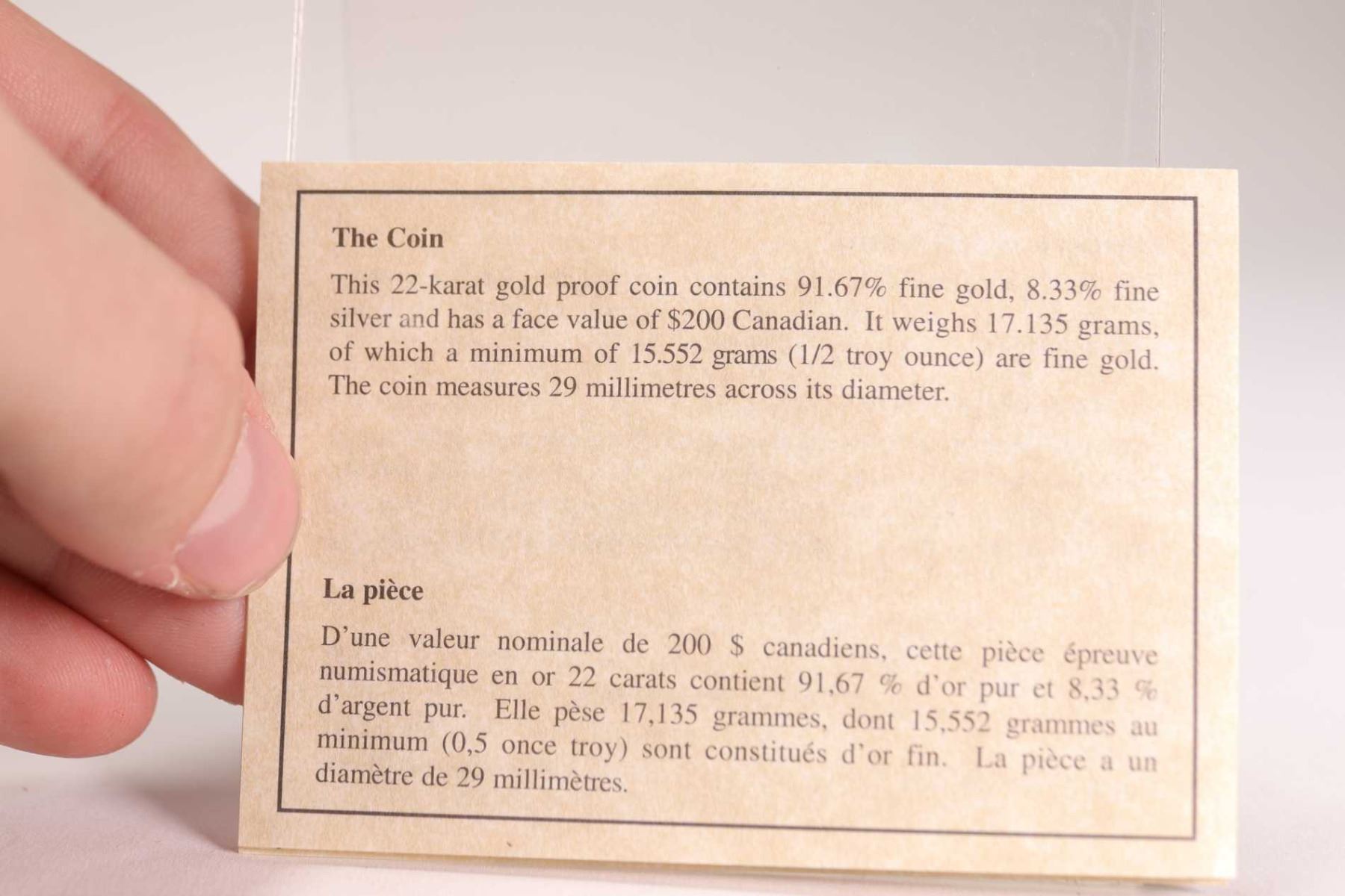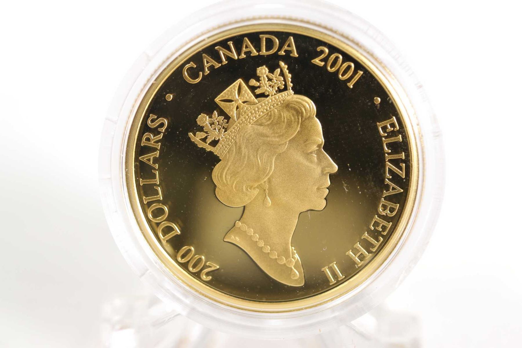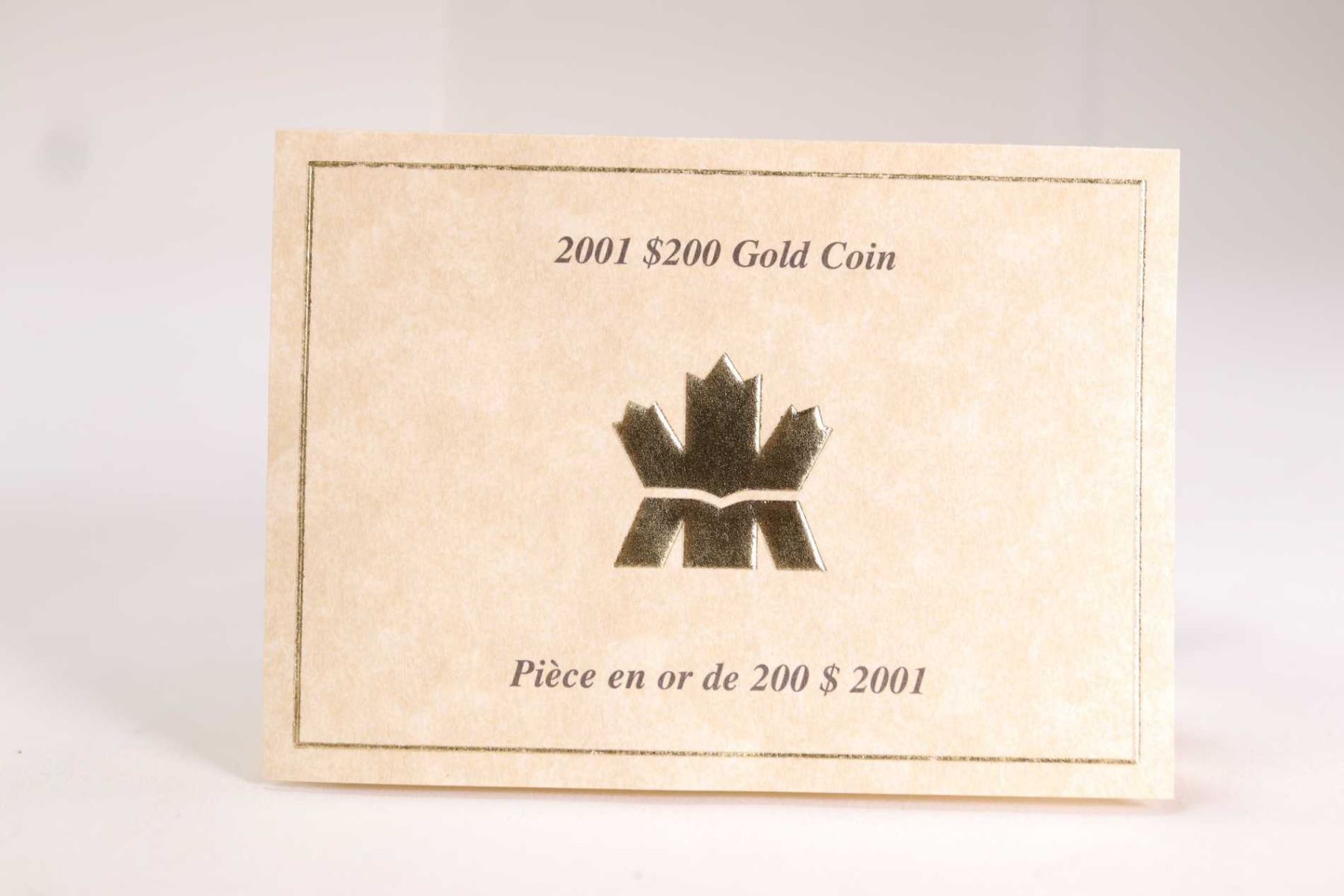 Canadian 2001 non-circulated $200 gold coin "Habitat Farm" by artist Cornelius David Krieghoff, 17.135 grams of 22kt gold